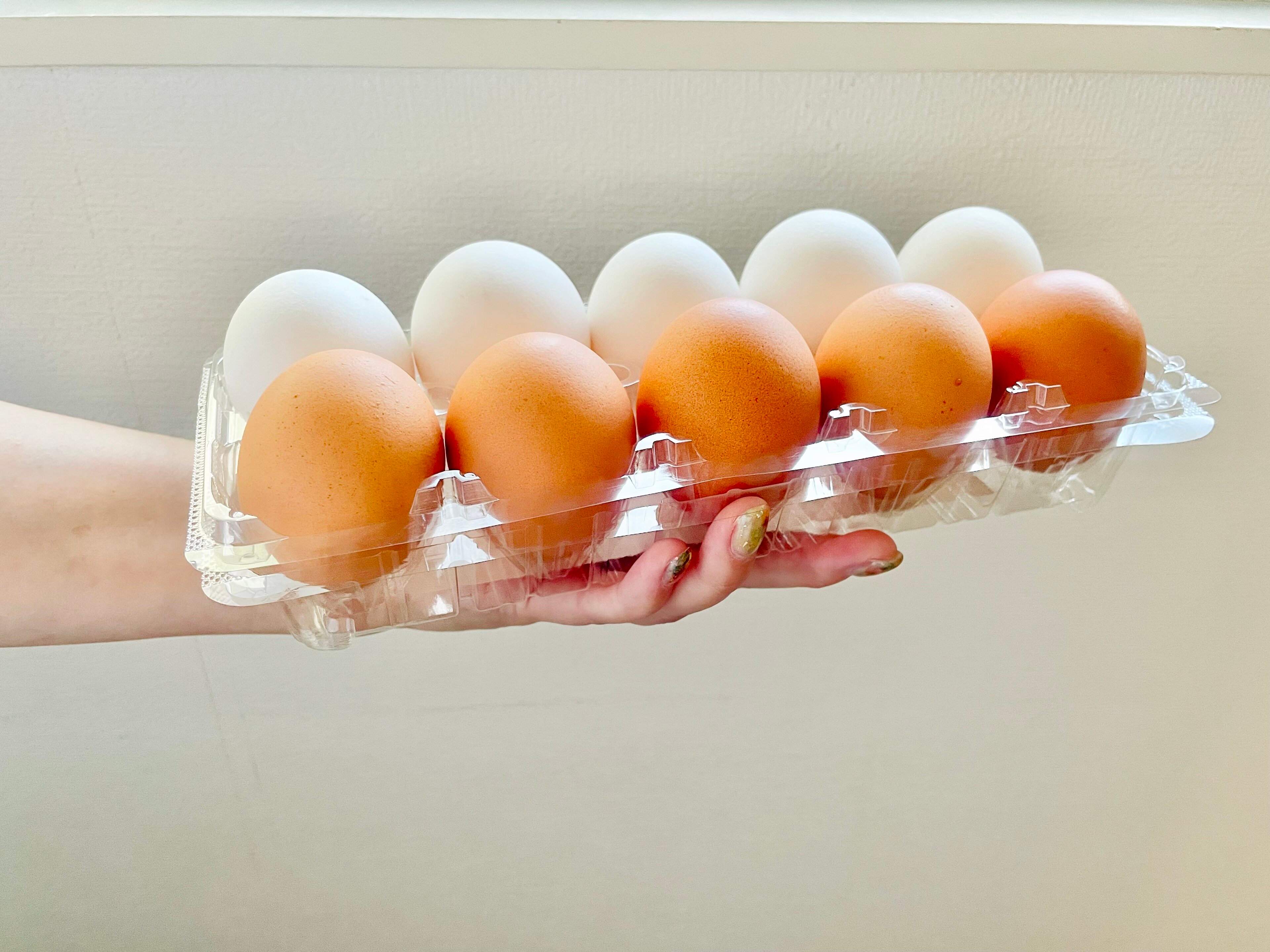 ドアポケットに卵ケースが付いている冷蔵庫もありますが、ドアの開閉で温度が上がりやすいので、あまりおすすめしません。この状態だと、冷蔵庫の棚にそのまま置けるので便利です。
