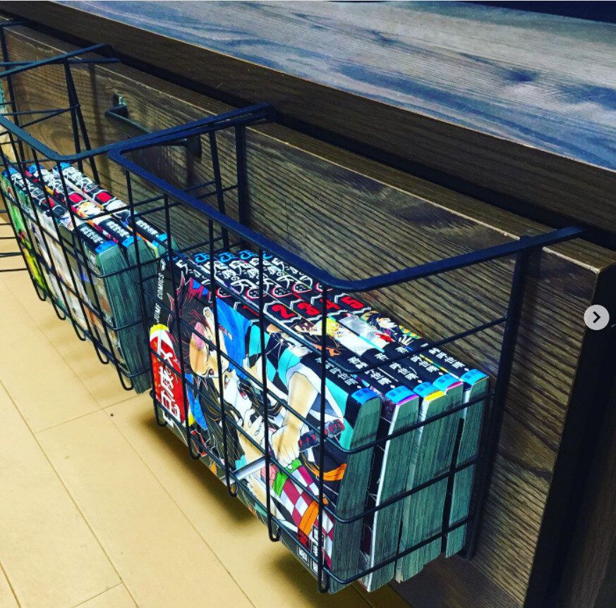 こちらは、セリアのワイヤーラックに漫画をまとめて収納した素敵なアイデアです。これなら出し入れも簡単で、読み終わったらポンと入れておくだけで見た目もおしゃれ!よく読む漫画だけをまとめて入れておくのもよいですね!漫画のほかにも小物などをまとめておけるので、汎用性の高いアイテムです。
