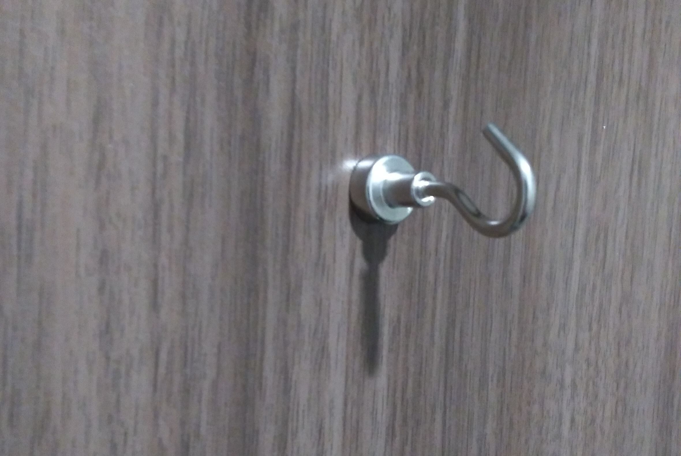 マグネットタイプのフックは、不要になったら簡単に外せることと、すぐに位置を変更できるのが便利です。商品によってマグネットの強度が選べるのも助かりますね。