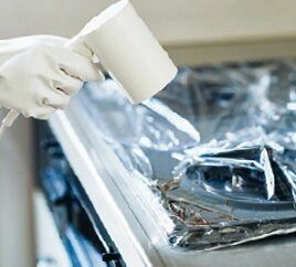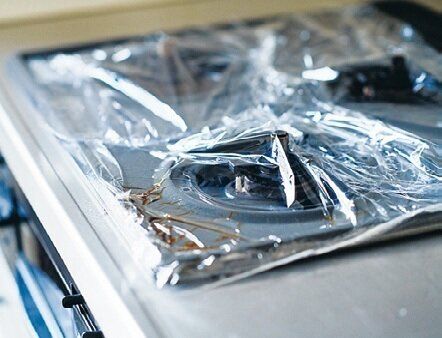 汚れ部分にアルカリ電解水をスプレーし、ラップを貼る。ドライヤーの温風を1~2分当て、こびりついた汚れをゆるめる。
