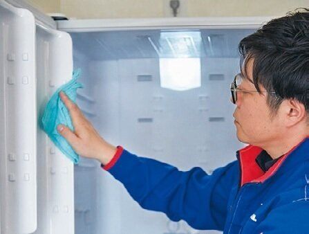 約50℃の湯に浸して固く絞ったホットぞうきんで庫内を拭く。湯拭きなら汚れが落ちやすく、水拭きより水分が乾きやすい。