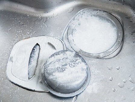 排水口内にコップ1杯(約200ml)の湯を注ぎ、泡が出た状態で10分放置する。パーツは古歯ブラシでこすり、水で洗い流す。