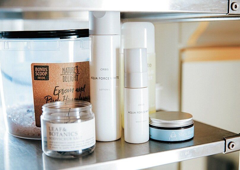 しまい込むと買い忘れや重複買いが頻発。引き出しを取り「見える収納」にしたら、取り出しやすく在庫管理もラクに。