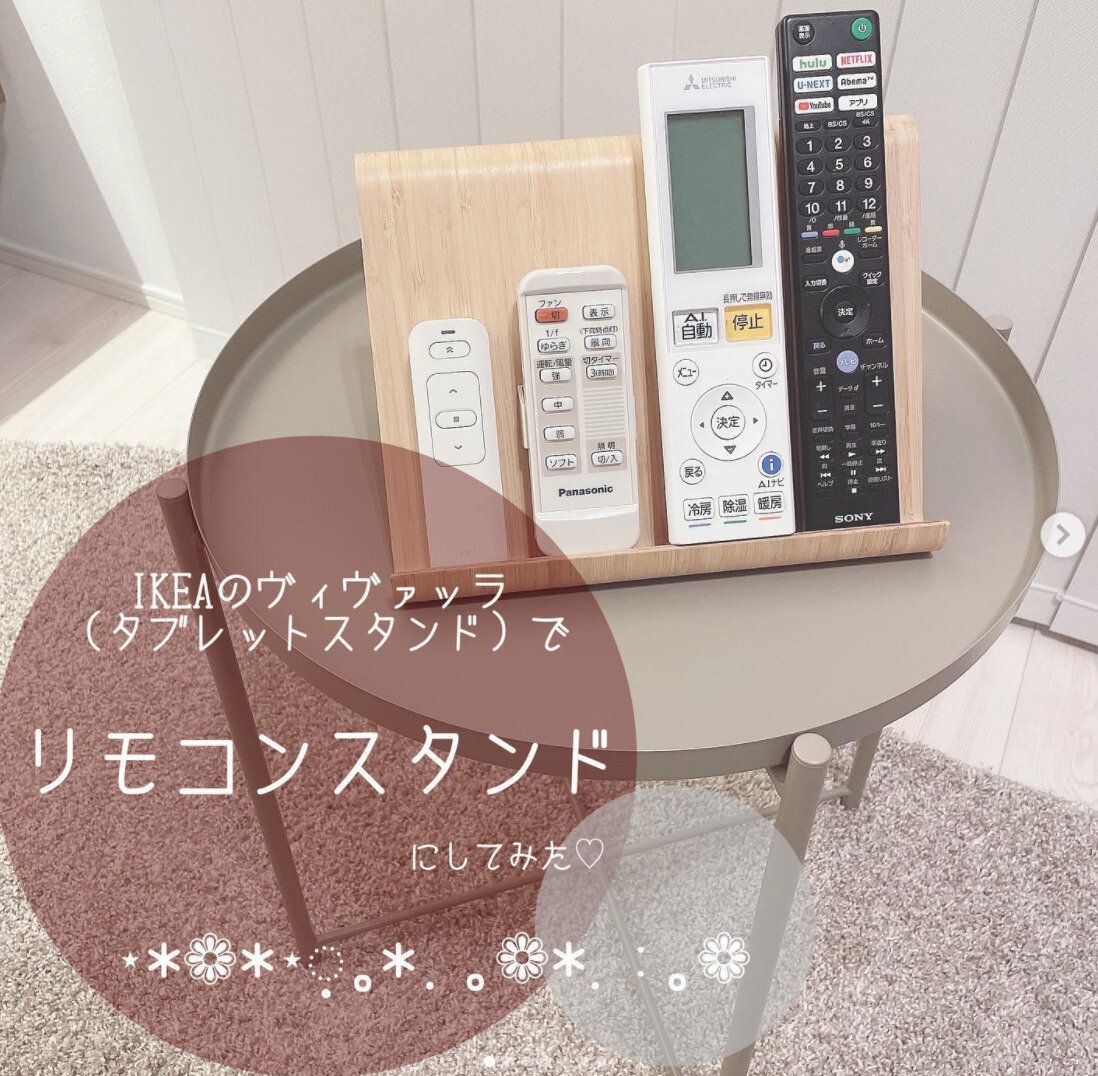 どの角度から見てもおしゃれなデザインで、使い勝手もいいIKEAの「VIVALLA ヴィヴァッラ」。値段は 1,499円です。竹製のタブレットスタンドなので、お部屋が温かみのある雰囲気に。リモコンを並べるだけで見栄えも使いやすさもアップします!