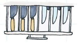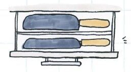 縦に仕切る方法もいいけれど、より効率化を図るならイラストのように横に仕切る方法もあり。よく使う物は手前のスペースに集めて収納すると、引き出しを全開しなくても出し入れできてラクちん♪あまり使わない物は奥にしまえばOKです。