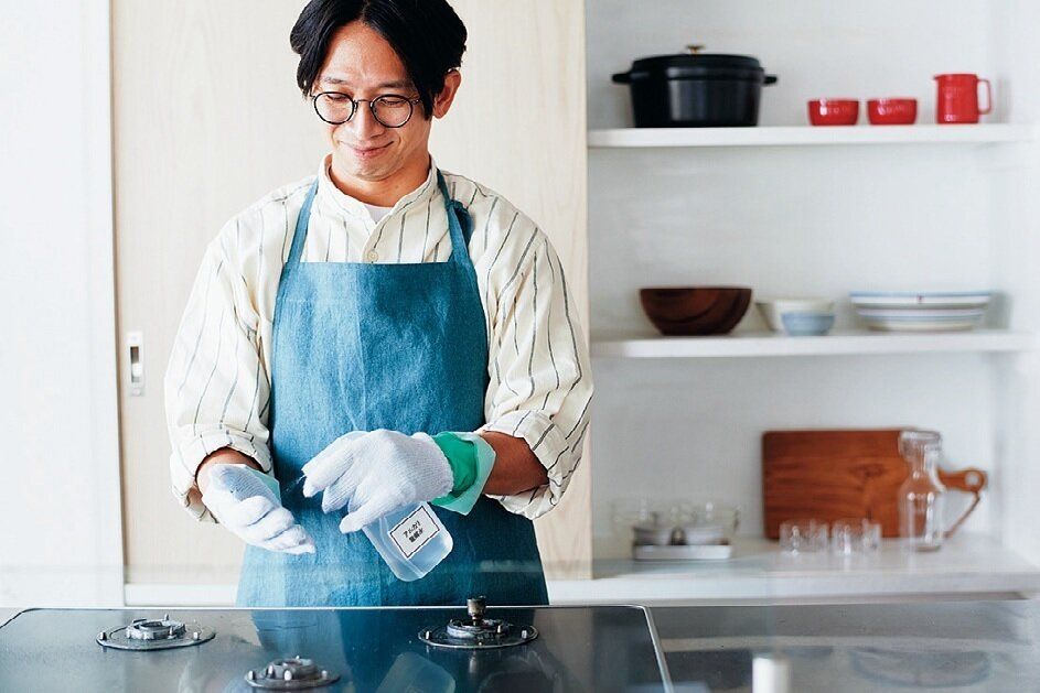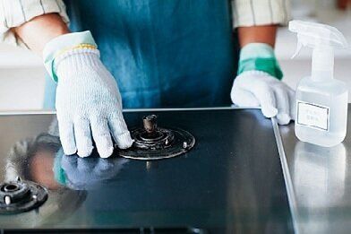 - 3 軍手でコンロまわりを拭く