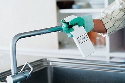 蛇口やシンクの内側全体にクエン酸水をたっぷりスプレーする。