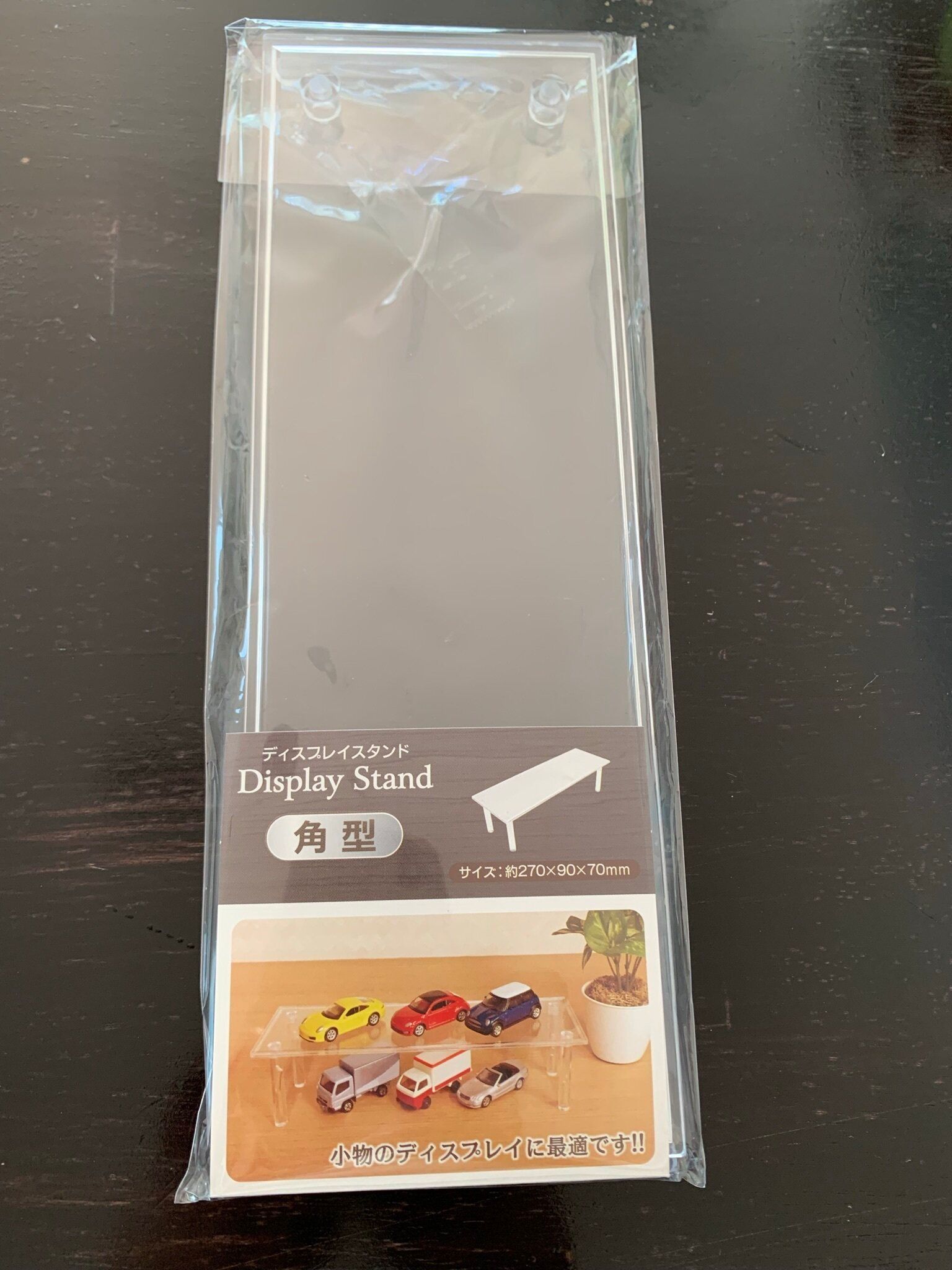 このディスプレイスタンドは四つの支柱を差し込むだけで組み立てが完成し、割としっかりとした棚になります。