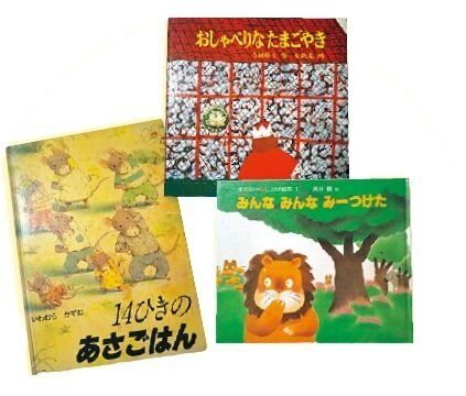 (※)『おしゃべりなたまごやき』(寺村輝夫・作、長新太・画/福音館書店)、『14ひきのあさごはん』(いわむらかずお・作/童心社)、『みんな みんな みーつけた』(木村裕一・作、黒井健・絵/偕成社)