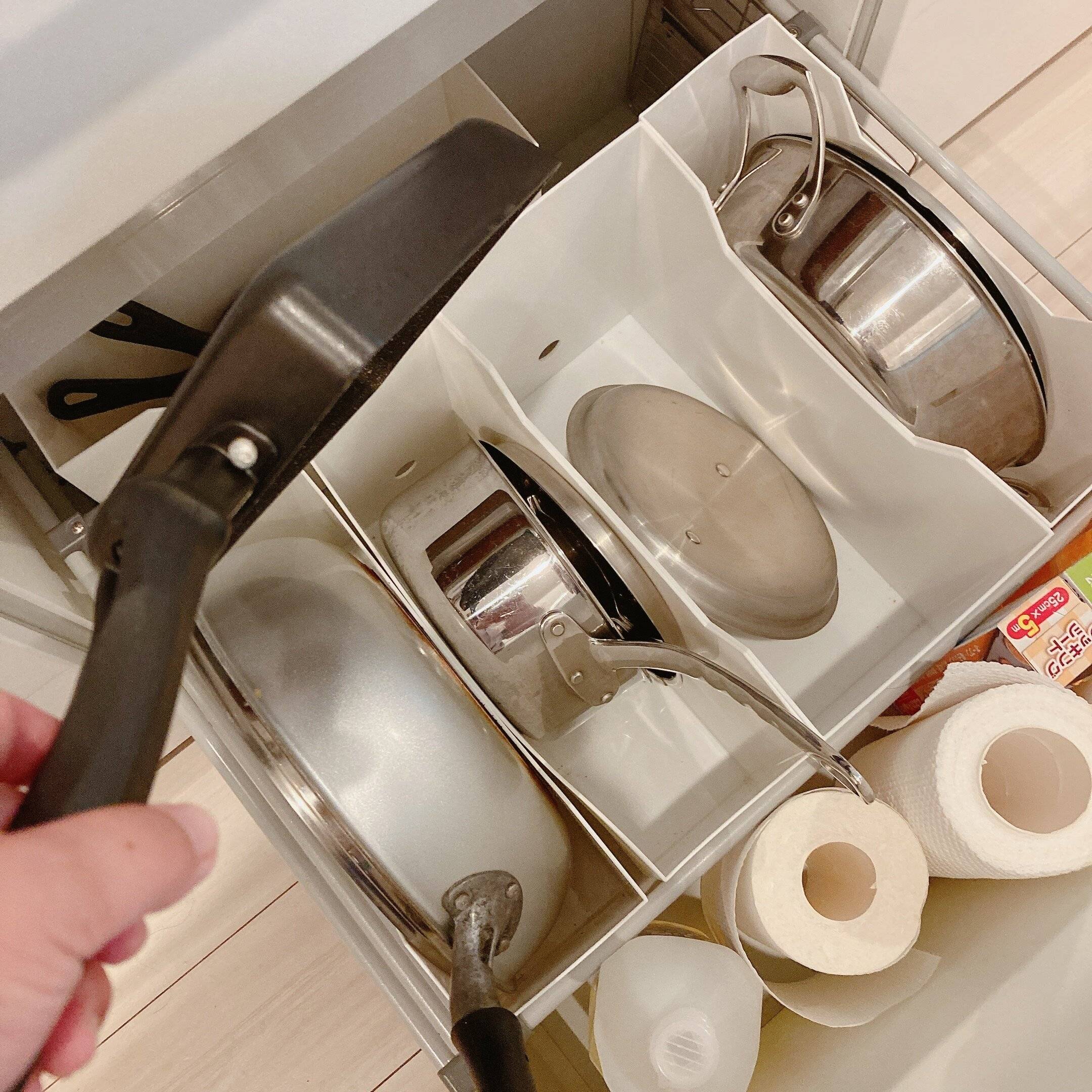 以前は水切りかごに入れた調理器具は乾くのを待って翌日にしまっていましたが、今では水がある程度切れたら乾いたふきんで拭き取って収納するようになりました。鍋やフライパンなども洗ったら拭いて収納までするので、次に料理をする際にサッと取り掛かれるように。料理へのハードルが下がったのはいうまでもありません。