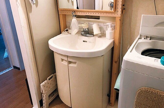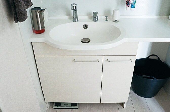扉を外して、洗面台下の収納はオープンに