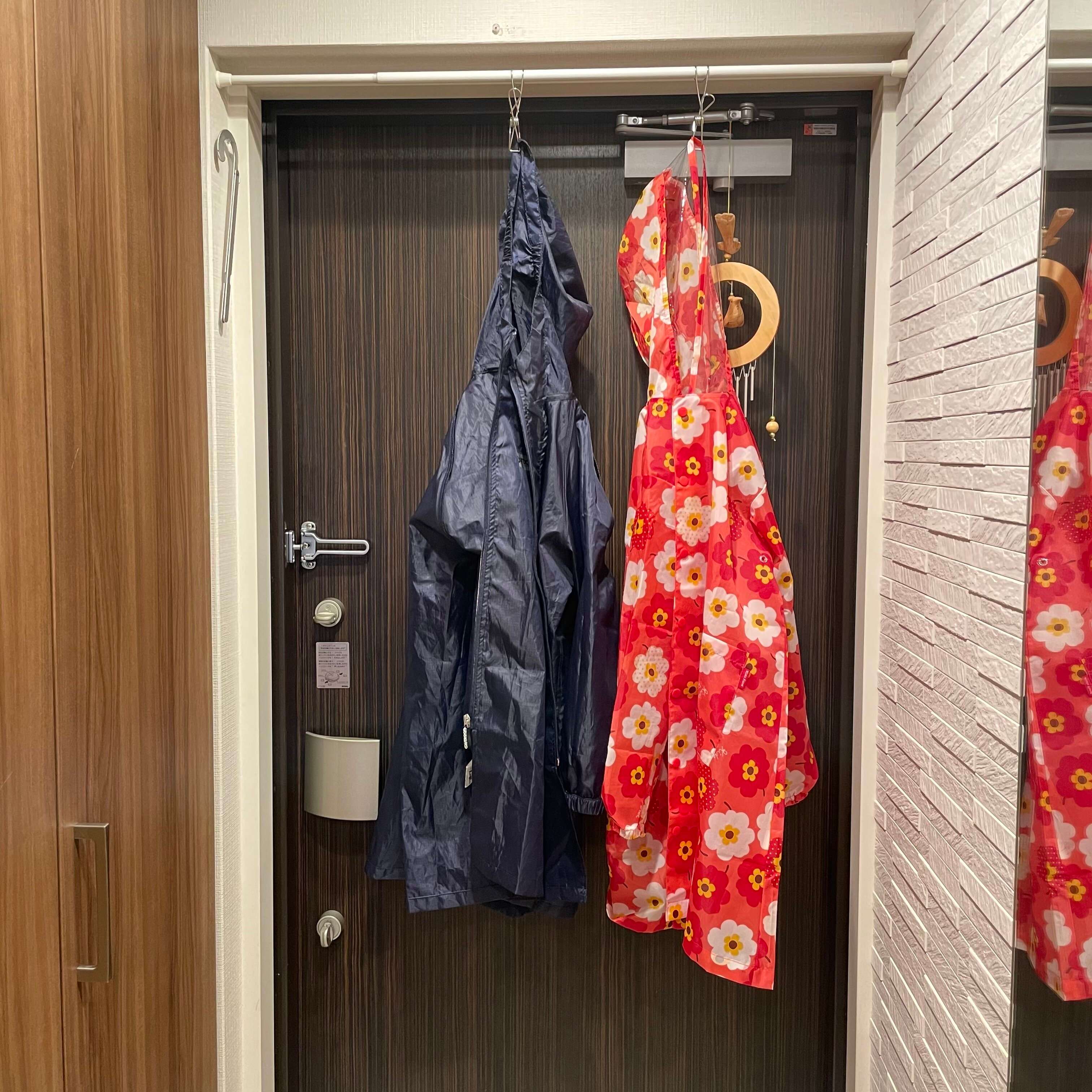 狭い玄関でもできる、家族分のレインコートの一時置き方法についてご紹介いたしました。