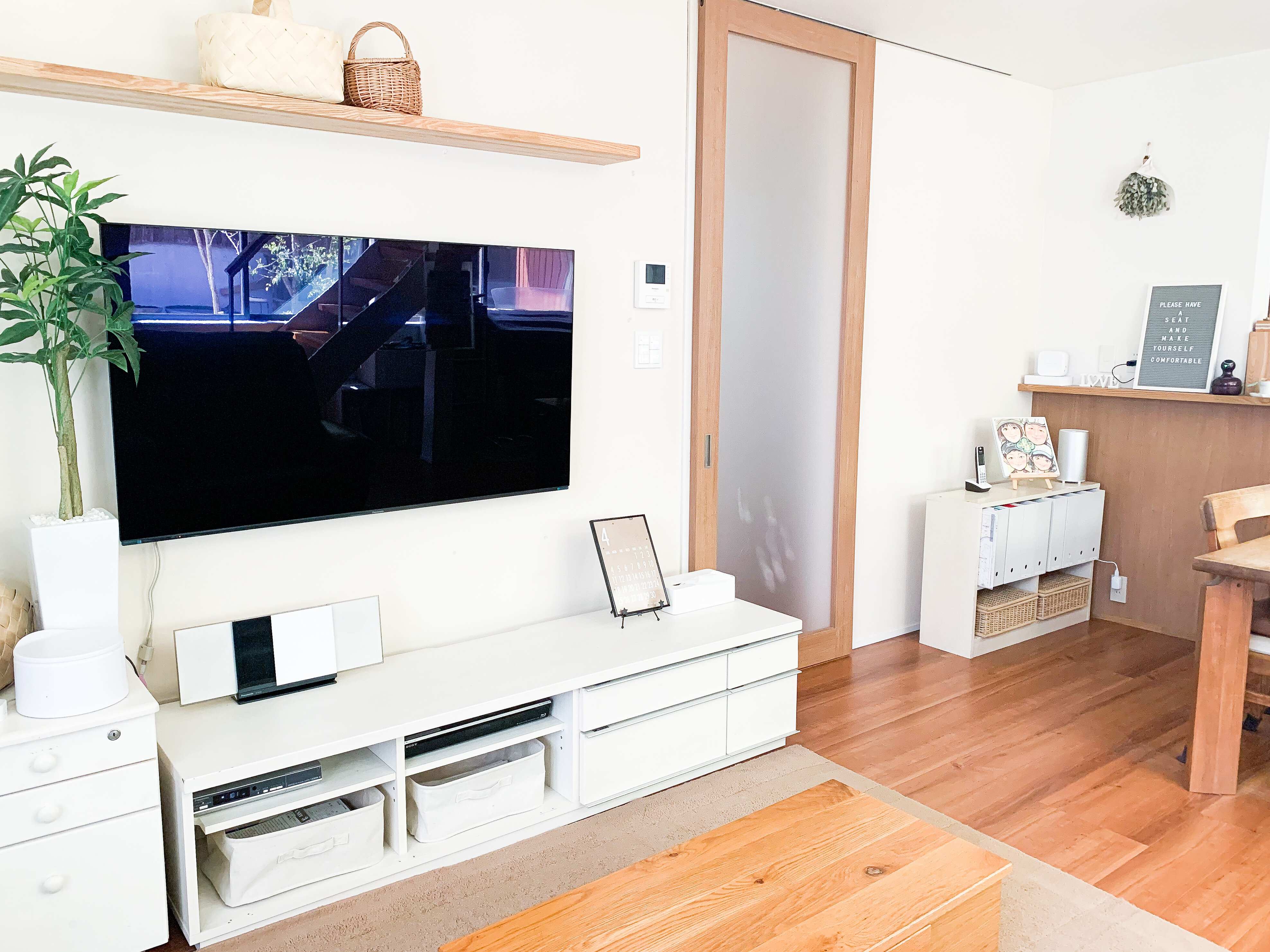 テレビ台の扉ははずしています。