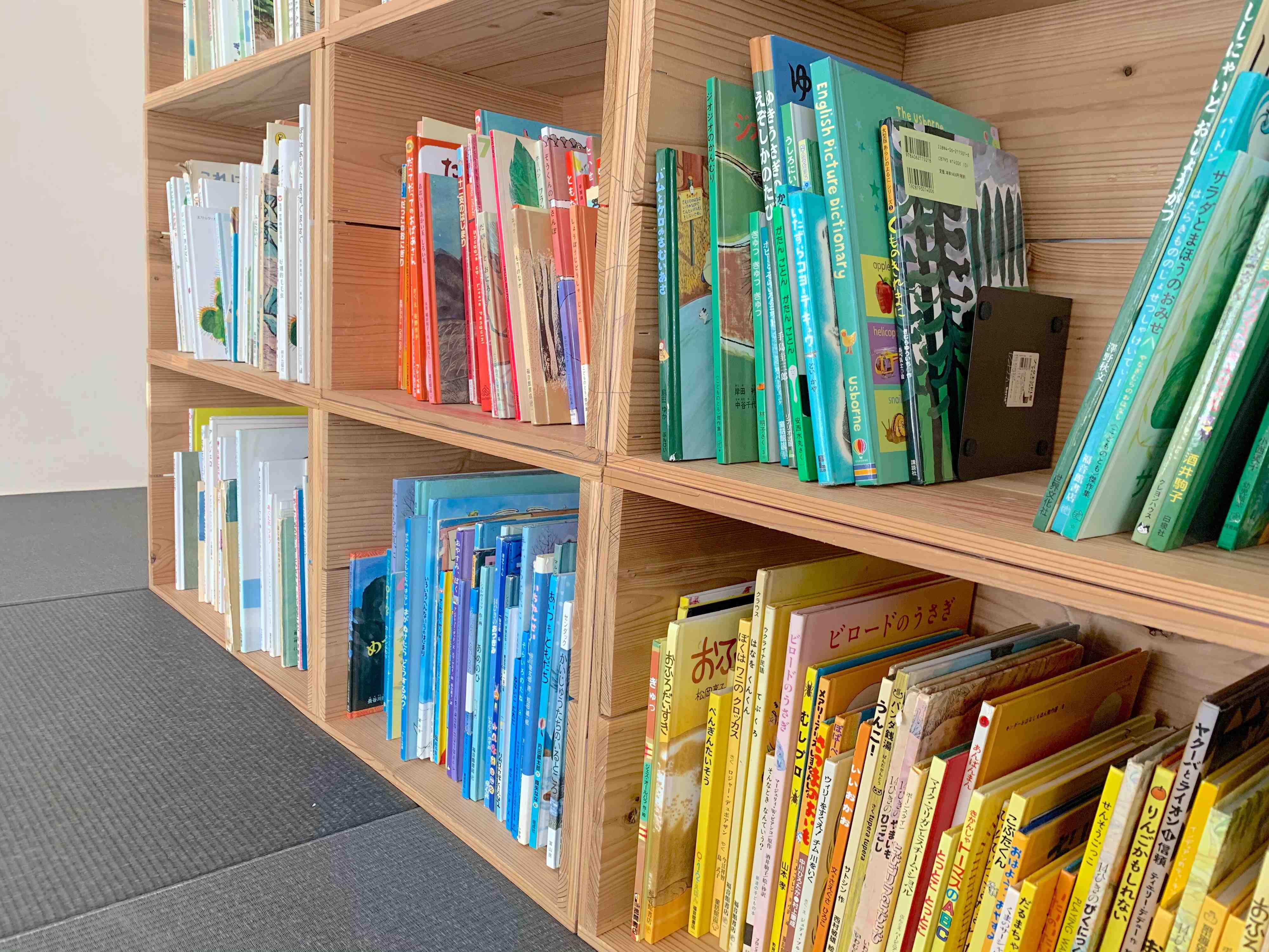 子どもたちが通う保育園でも、背表紙に貼られたテープと本棚に貼られたテープの色を合わせて片付けているそうです。「保育園と同じだよ!」と嬉々として片付けてくれています。