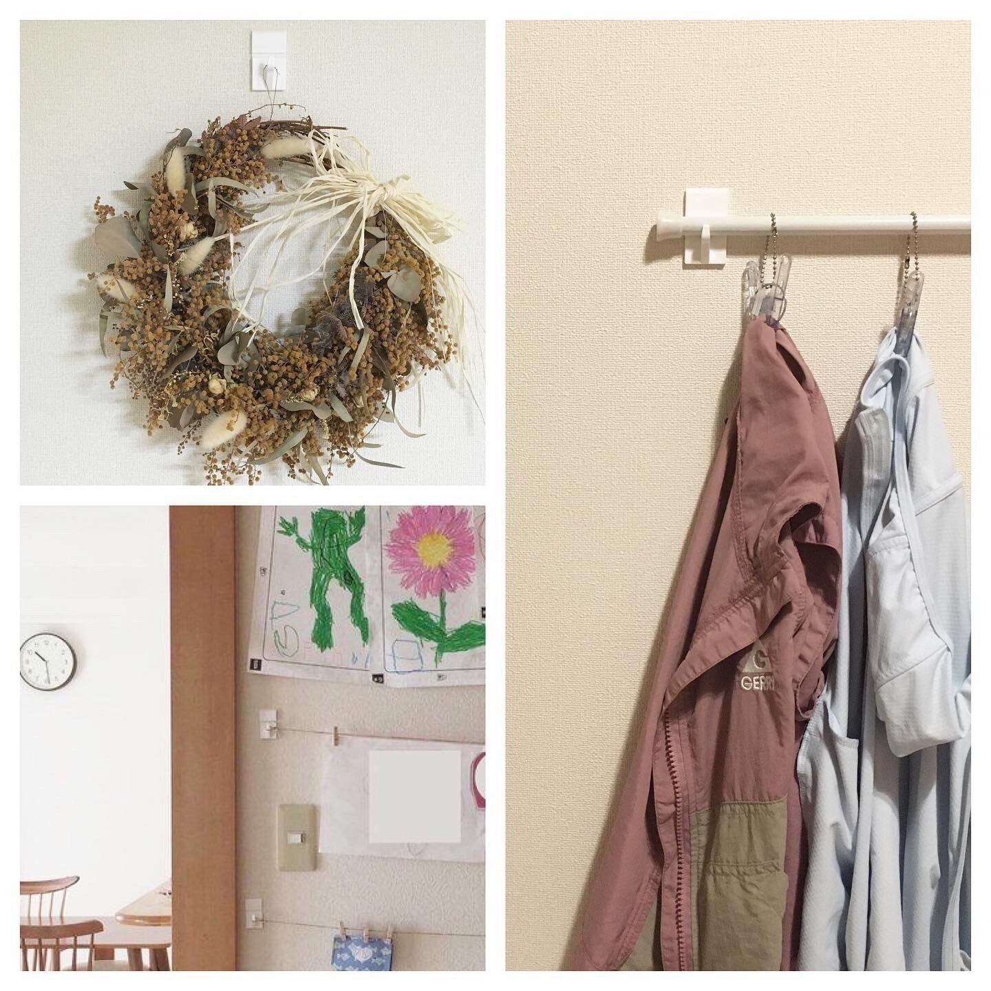 買い足し買い足しで、気づけば我が家では今や30個ほどに。リースやお支度ボードを吊るしたり、突っ張り棒と組み合わせてちょっとした洋服掛けにしたり、一時的に季節物の定位置が必要な時も使ったりしています。