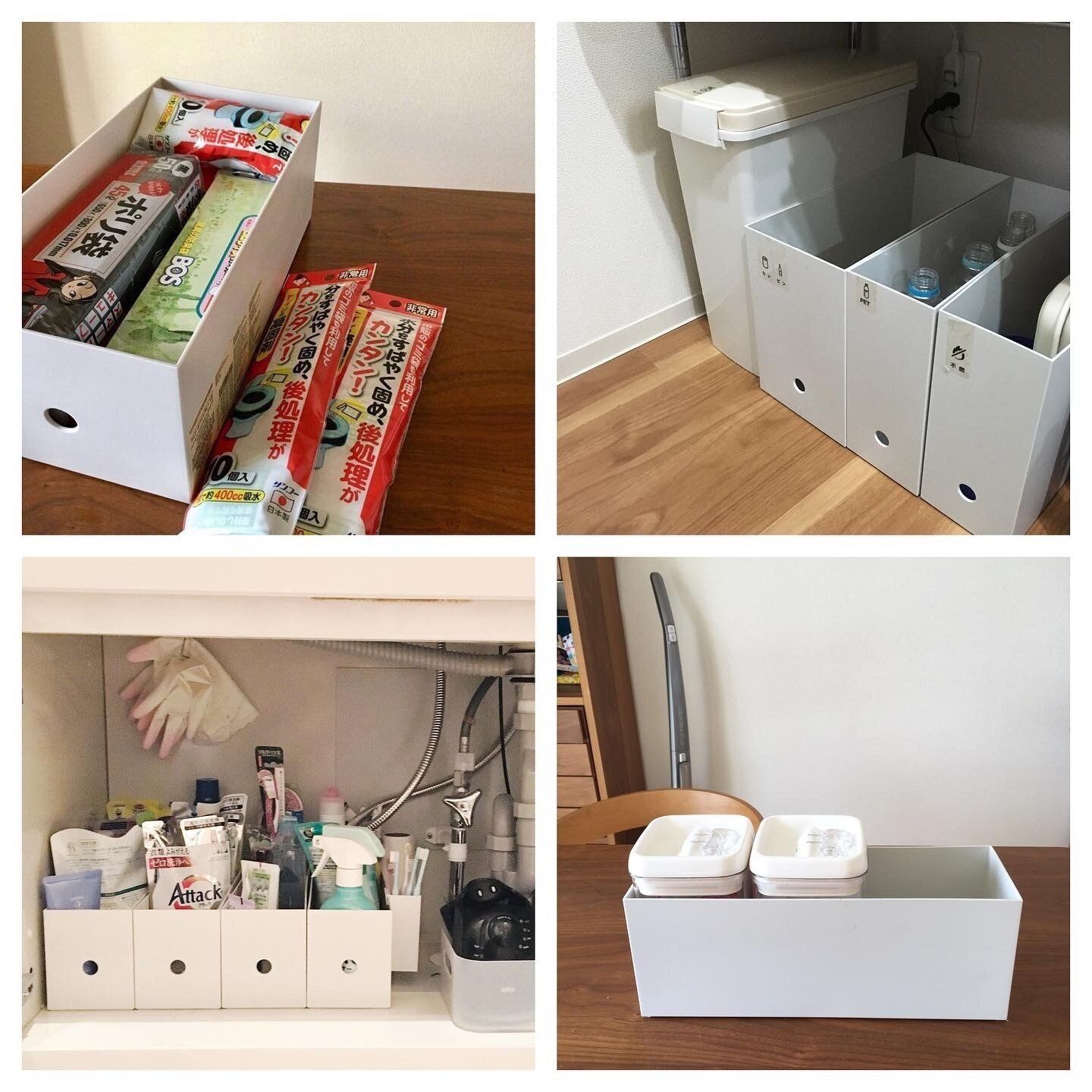 定番中の定番ですが、やっぱり便利!引越しにより収納スペースが変わったり、中のものが不要になった後も、他の用途に転用できる点が重宝します。幾つかタイプやサイズがありますが、書類は元より、キッチンのゴミ箱や防災グッズの収納まで、我が家には50個はあると思います…。
