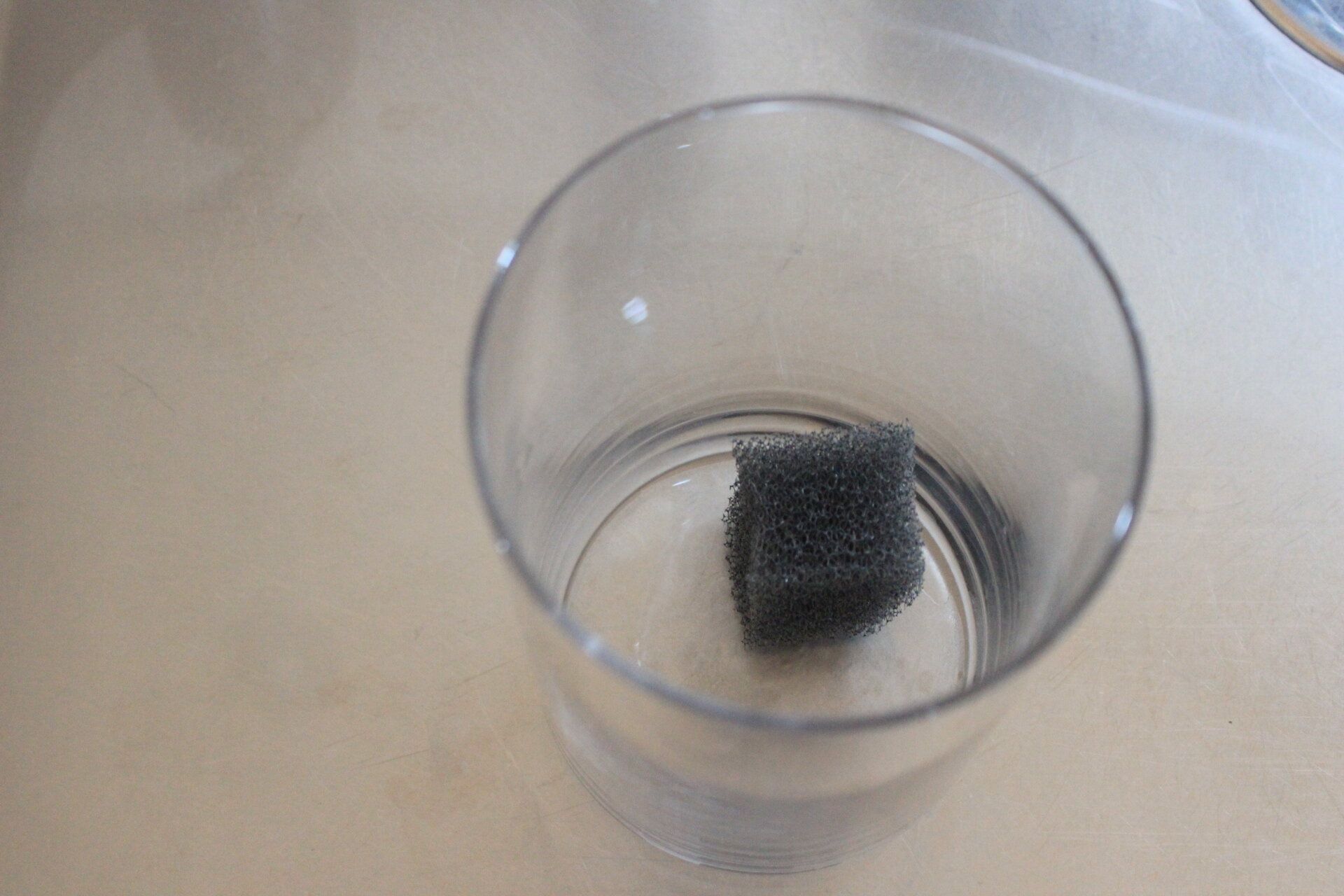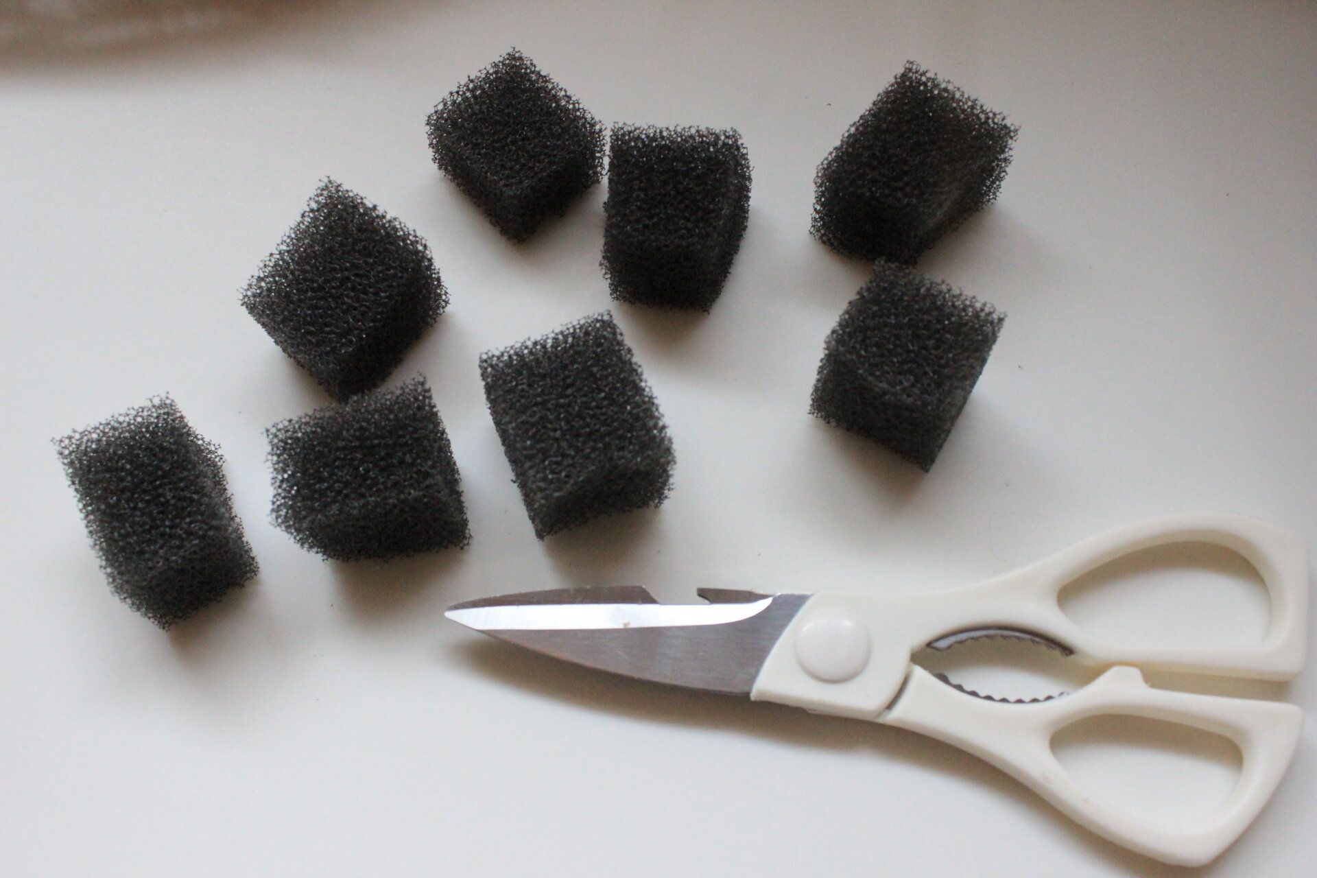 オキシ漬けして乾いたスポンジは、ハサミで小さく切ります。