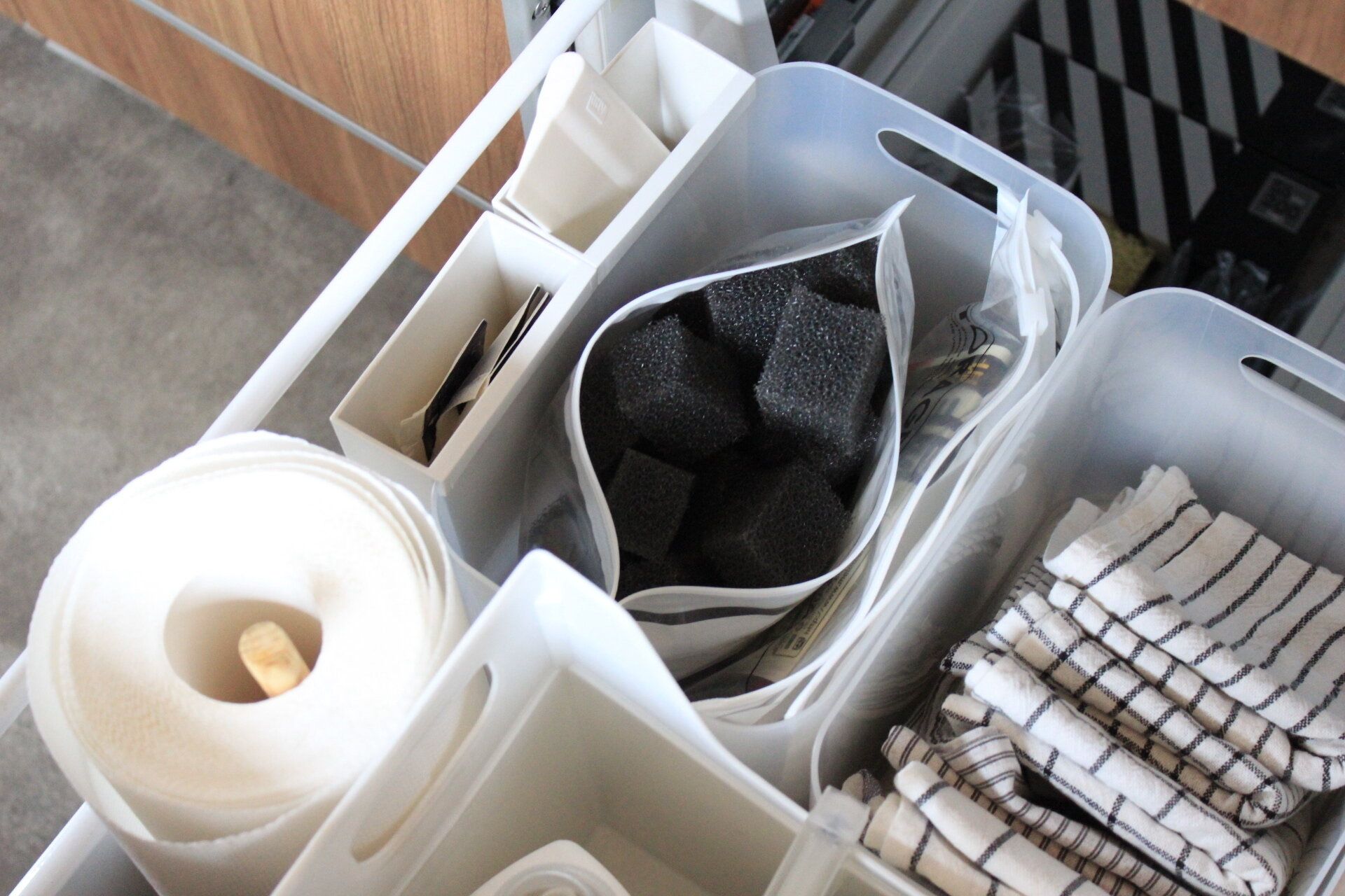 取り出しやすいシンク下に、袋を開けたまま置いています。