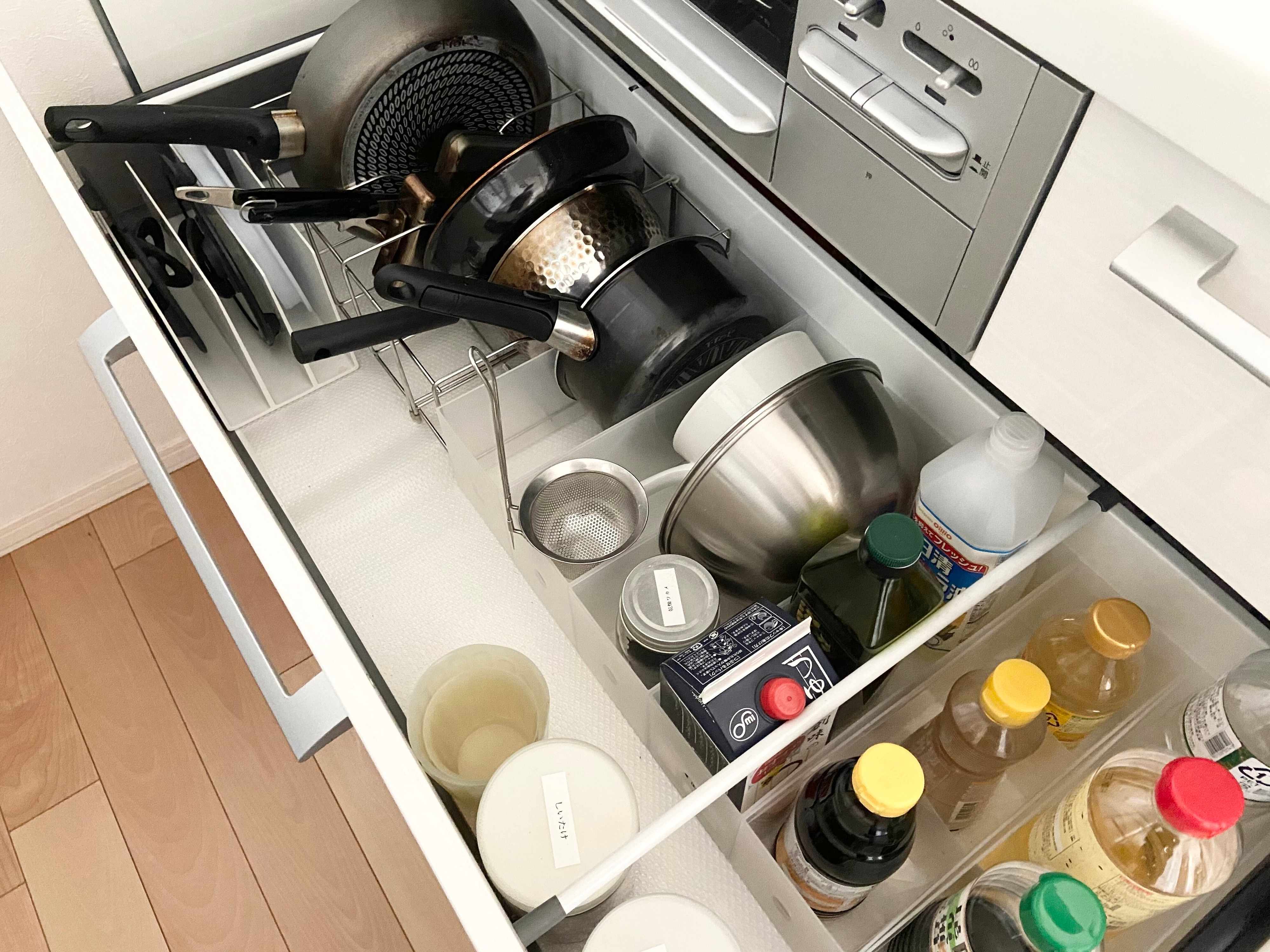 何でもキッチンカウンターに出す収納にしていると、確かにすぐに手が届き使いやすくはありますが、掃除がしづらいというデメリットも発生します。また頻度の低いものまで出していると使われることもなく埃をかぶることになり不衛生。逆に高頻度なものは引き出しにしまい込むと引き出しの開け閉めの回数が増え、引き出しの中に埃が溜まりやすくなります。そのため出しっぱなしにするモノは毎日使う使用頻度の高いものに絞るのがポイントとなります。