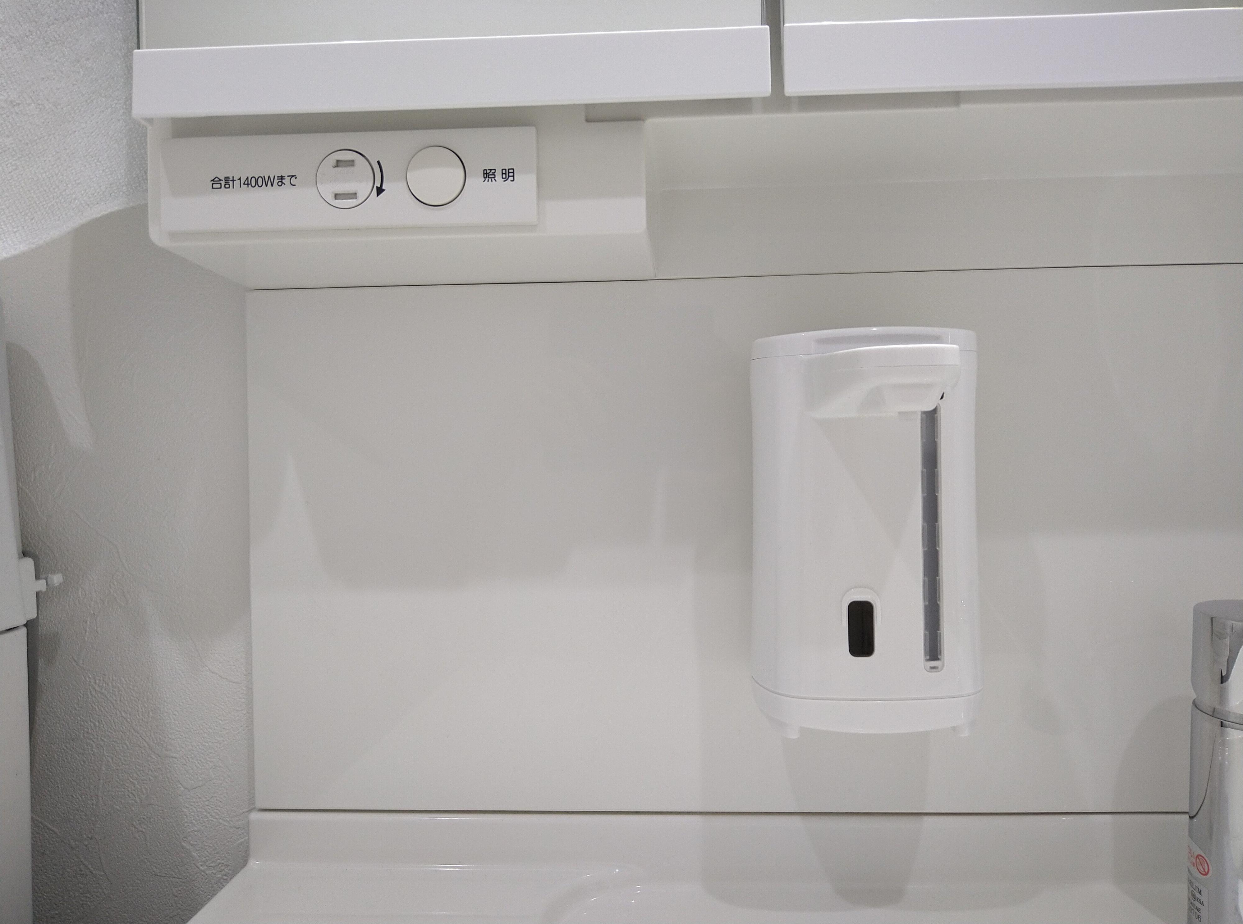 オートハンドソープディスペンサーもフィルムフックに引っ掛けて浮かせています。