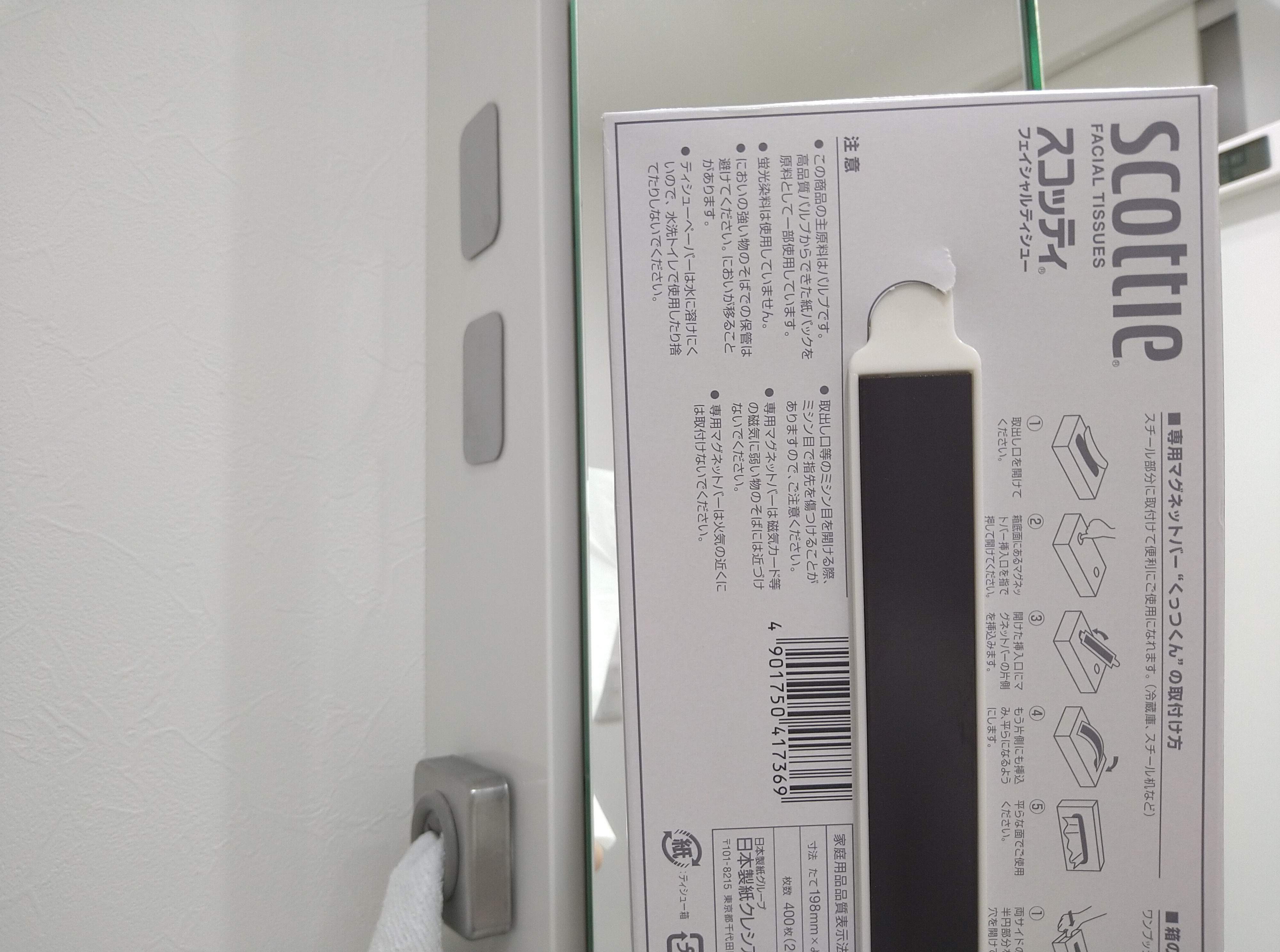 スコッティやクリネックス製品専用の「マグネットバーくっつくん」というものを使用しています。