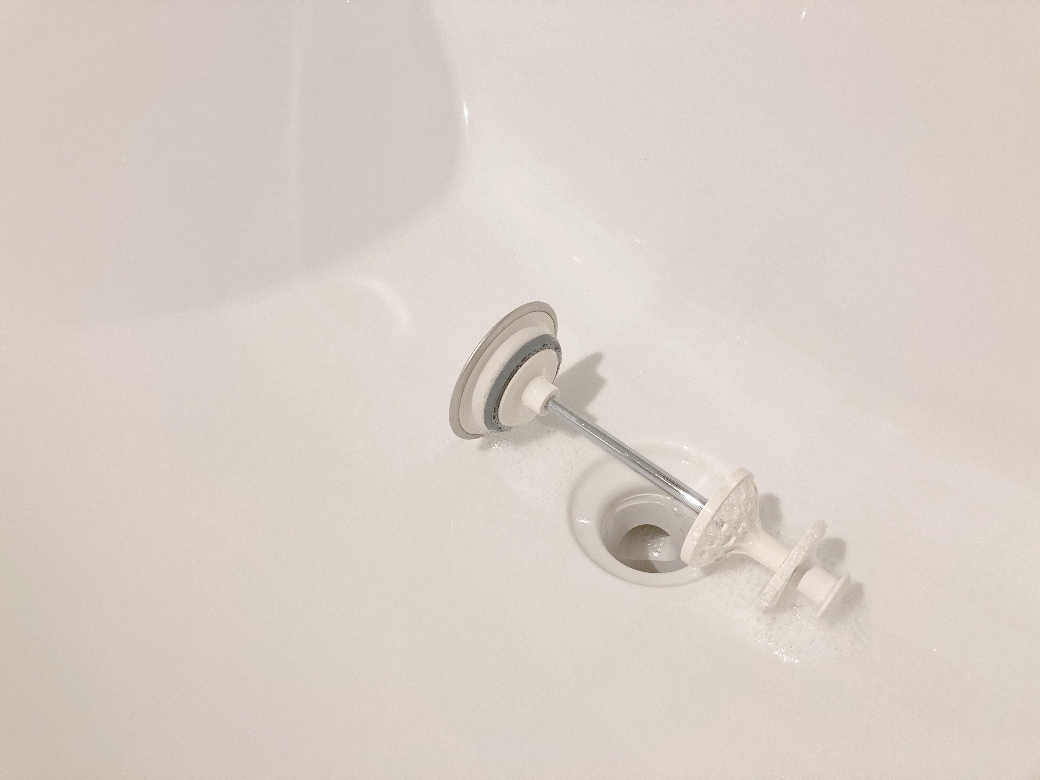 どうしているのかというと、ヘアーキャッチャーについたゴミや髪の毛をティッシュやキッチンペーパーなどで取り、泡で出てくるカビハイターを数回プッシュ!数分後に洗い流すだけでピカピカになります。月1くらいの頻度でしか行っていませんが、入居から約1年経った今もこの部分は新品同様です。