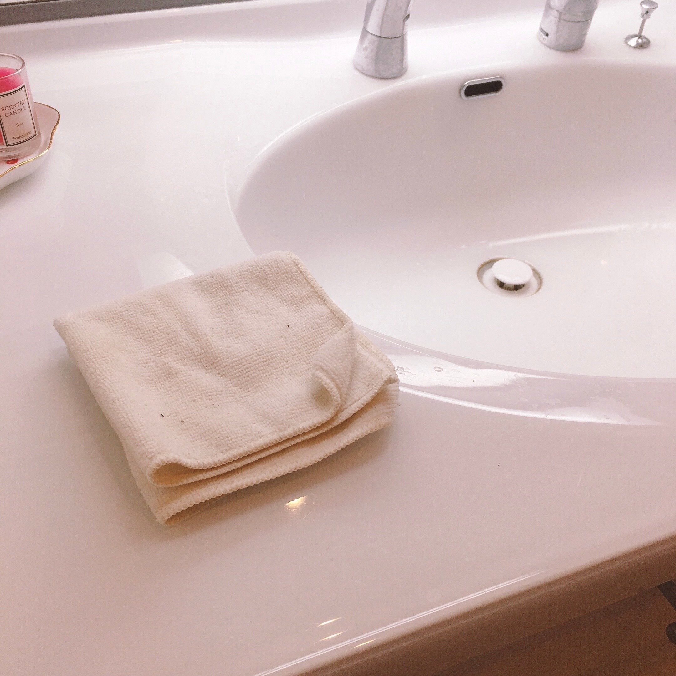 というわけで洗面所にはマイクロファイバークロスを1枚置いて、使った後に各自拭いてもらうようにしています。