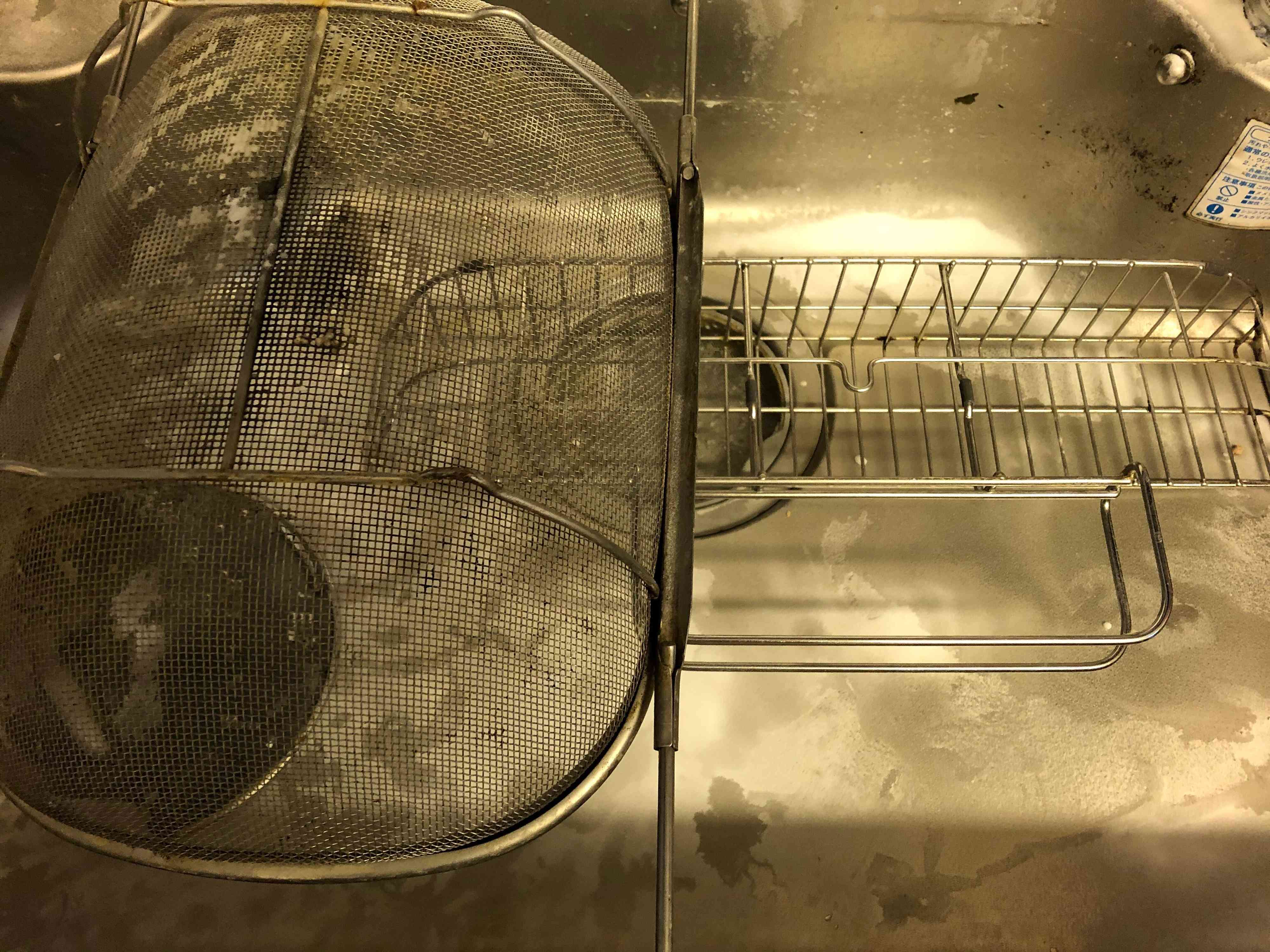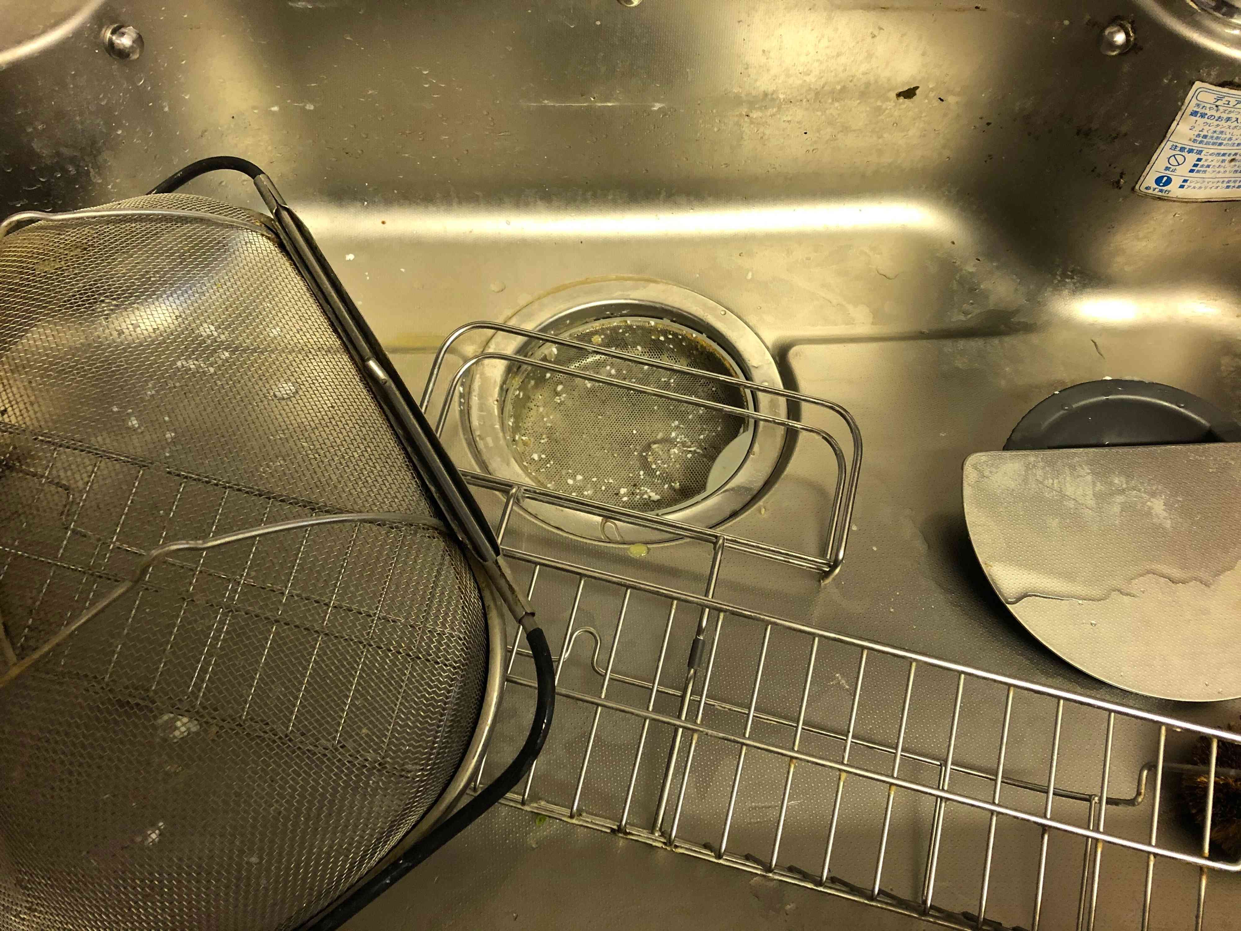 水切り用の網や、洗剤を置く棚にもかけましょう。その後20分ほど放置しておきます。
