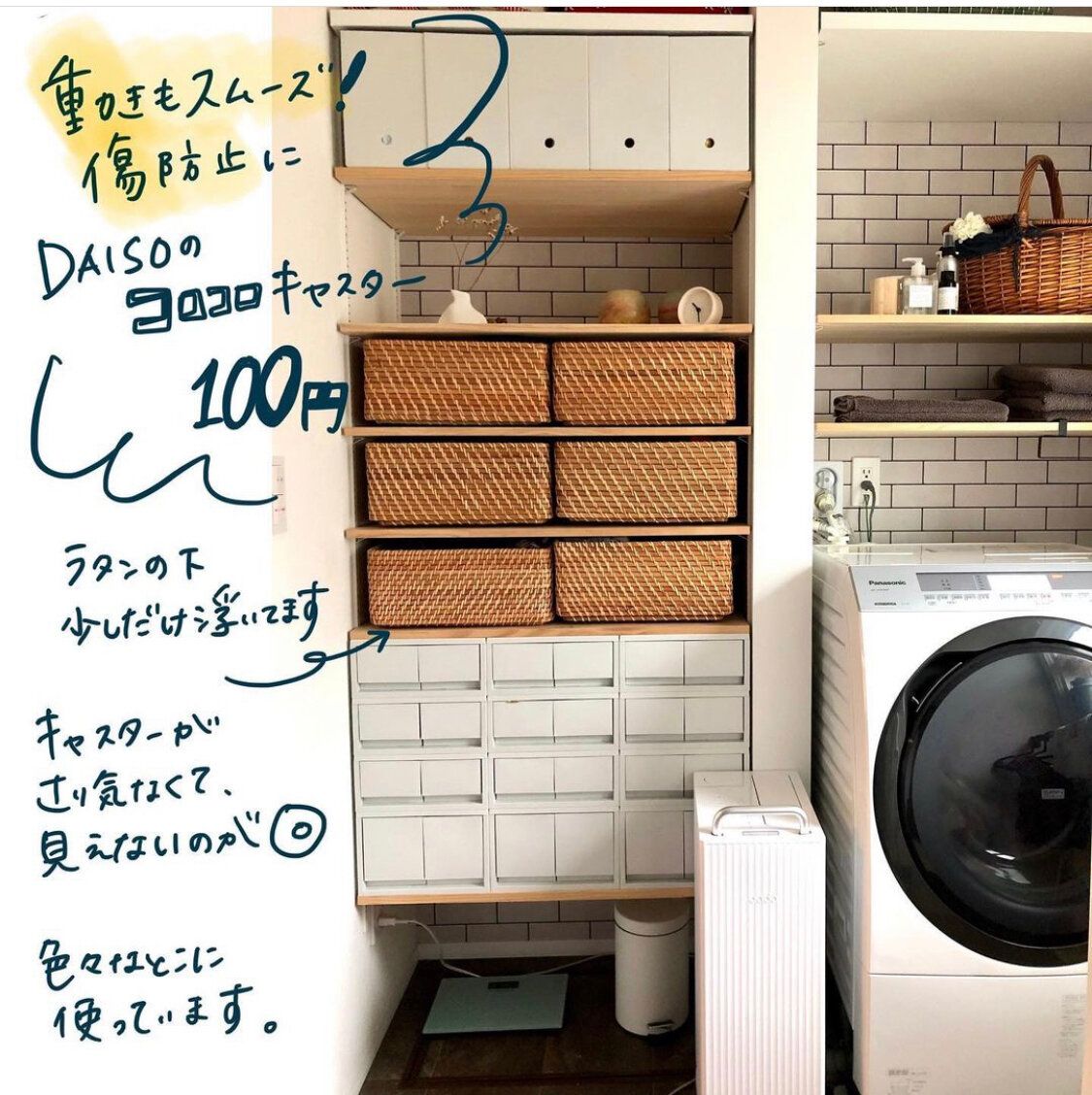 ダイソーのキャスターは浅いのでさりげなくて目立たない