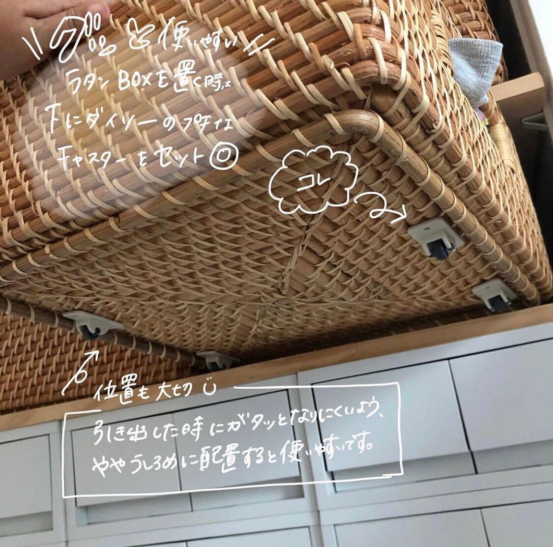 すべてのラタンボックス にキャスター設置済み。