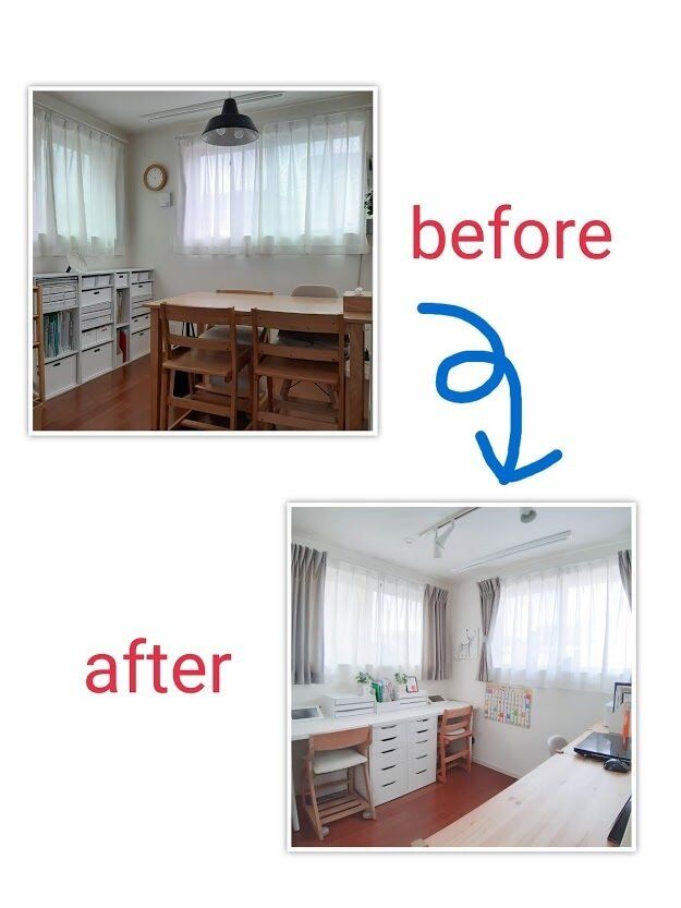 そこで子ども達の希望もありダイニングに子供の常設学習スペースを作ることに。狭い我が家は両方置くという選択が出来ないので家族と話し合った結果、ダイニングテーブルを手放す事にしたんです。