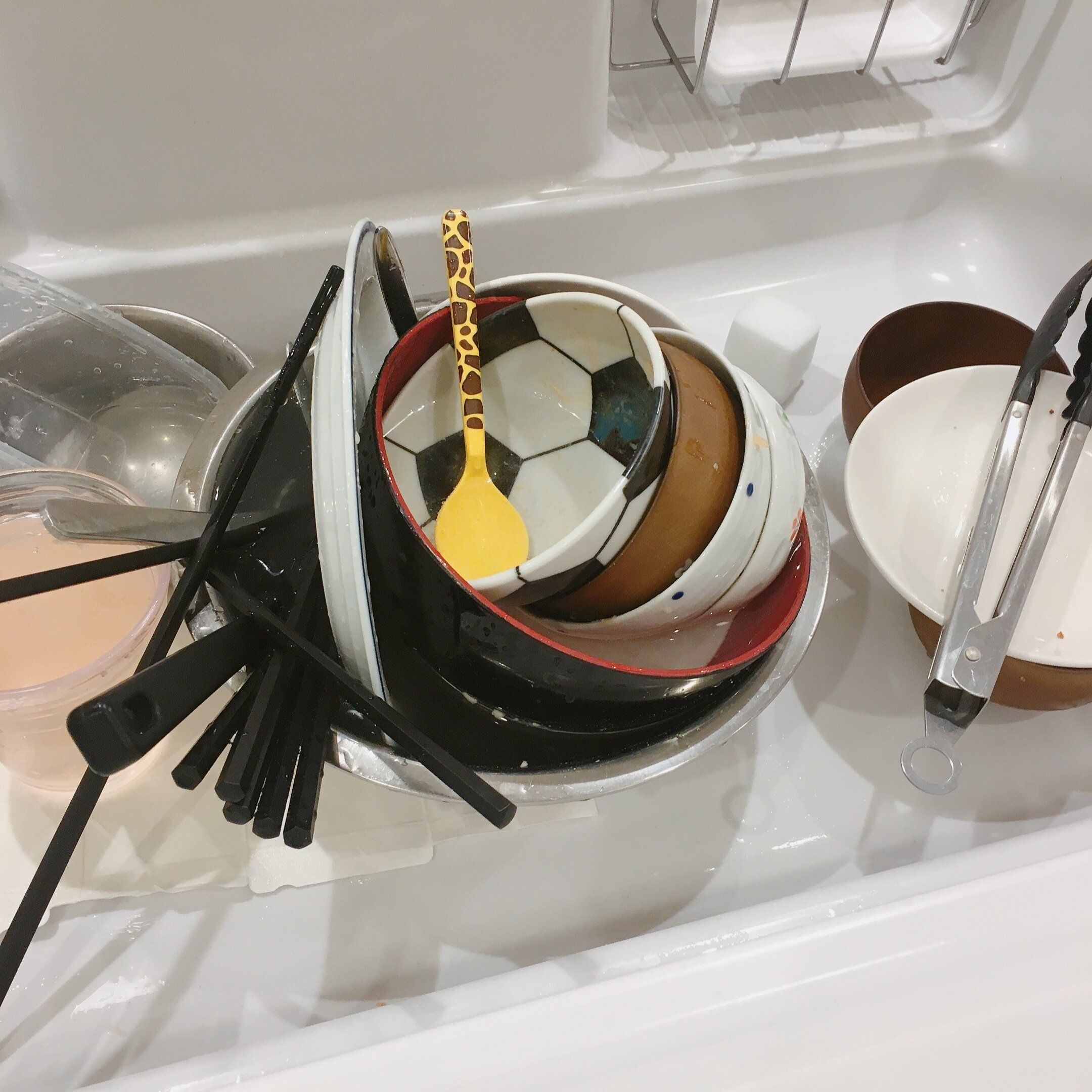 - 食器類を食洗機、鍋類を手洗い
