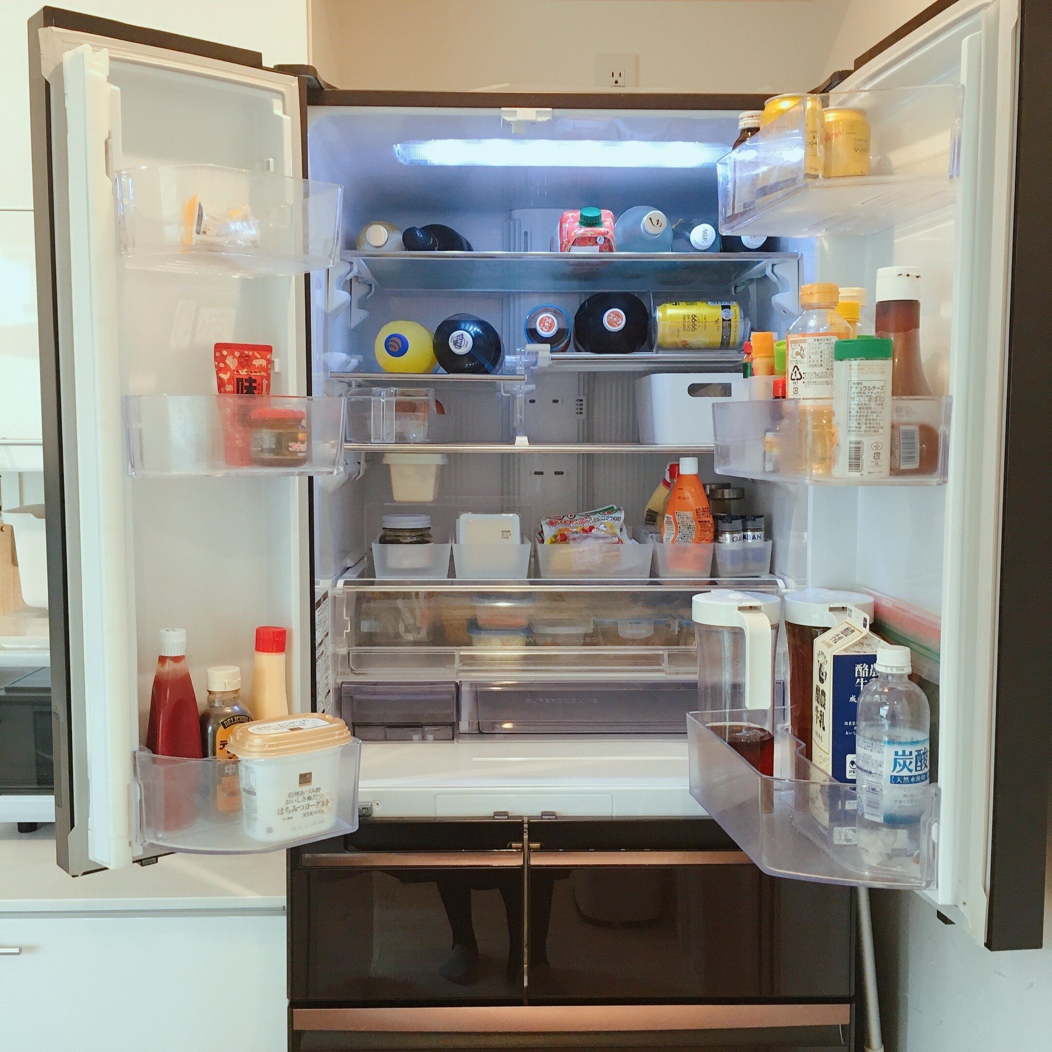 調理の際に使って出しっぱなしにしていた調味料、お茶や牛乳などの飲み物を冷蔵庫にしまい、学校や幼稚園で配布されたプリント類は定位置にしまいます。文房具なども出ていれば元に戻します。