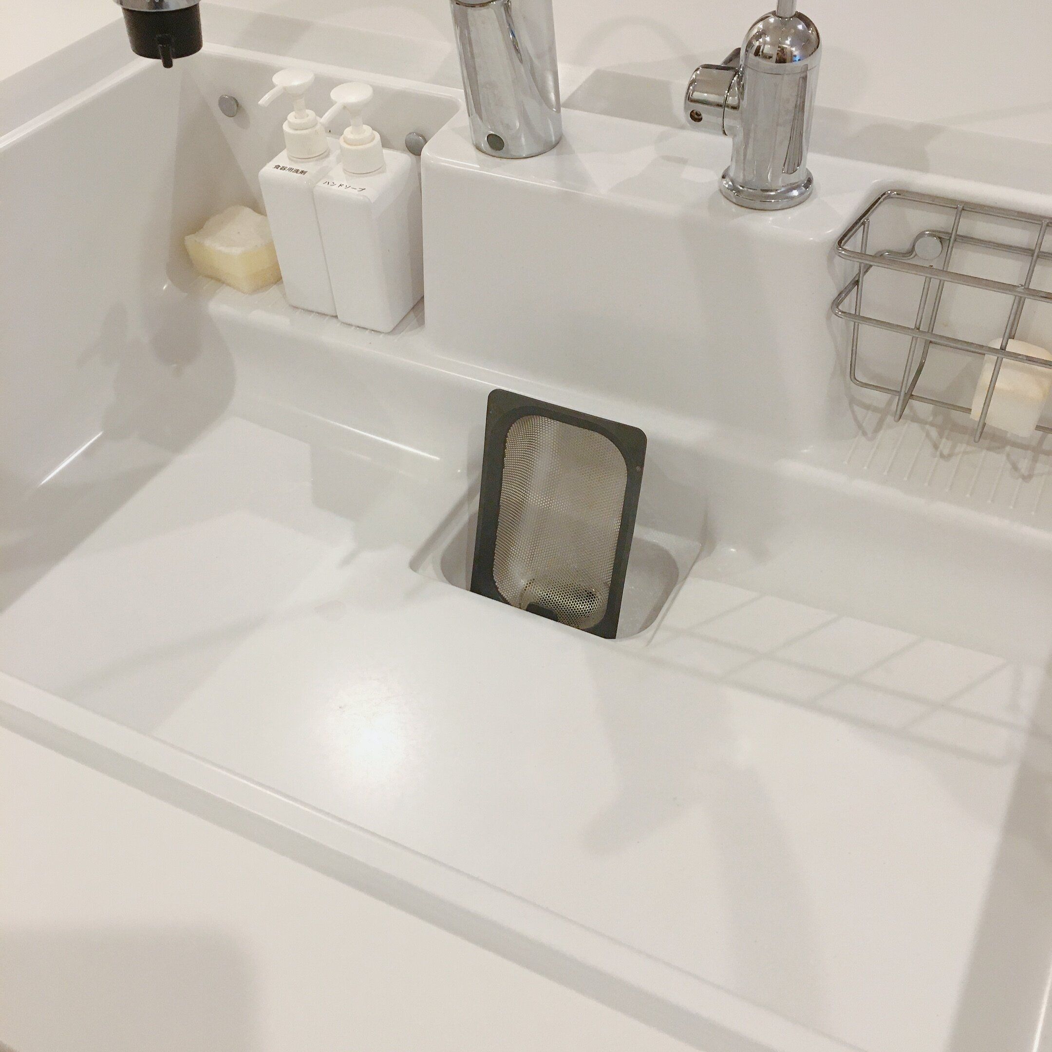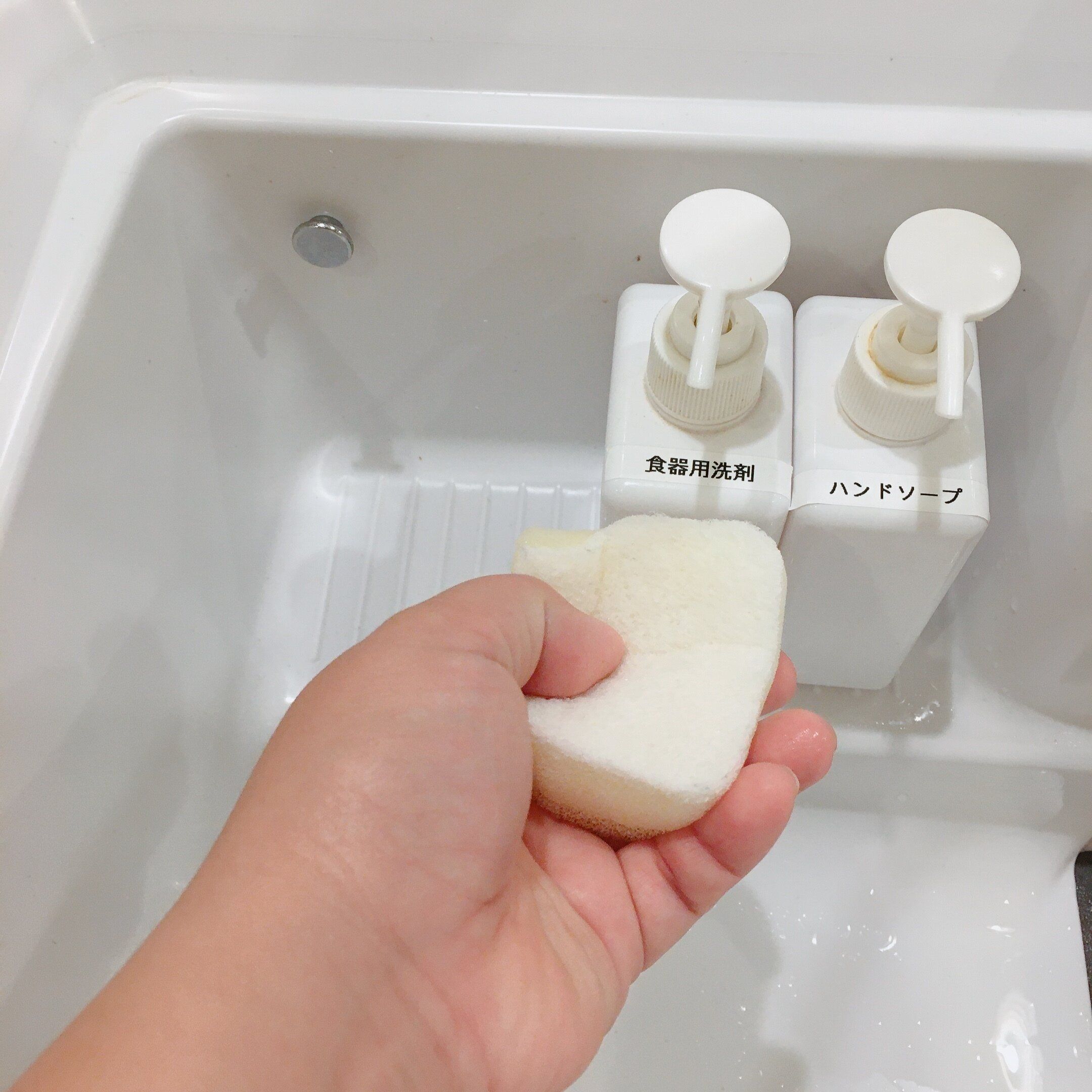 キッチンリセットを毎日するようになってからは、スポンジも一つにしています。賛否両論あるかと思いますが、我が家のスポンジはシンクの掃除も食器洗いも兼用です。