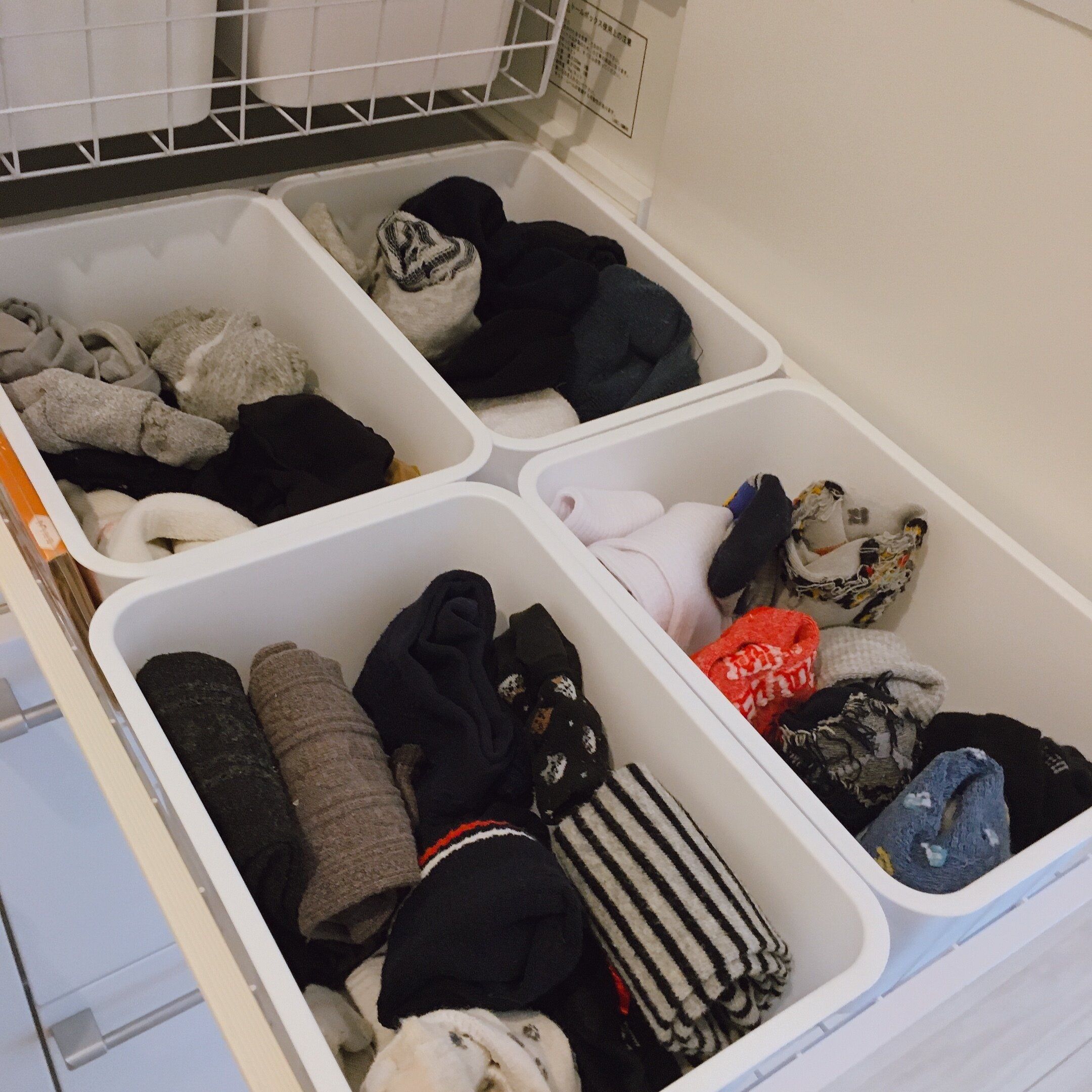 靴下はクローゼットには収納せずに、ここに収納しています。