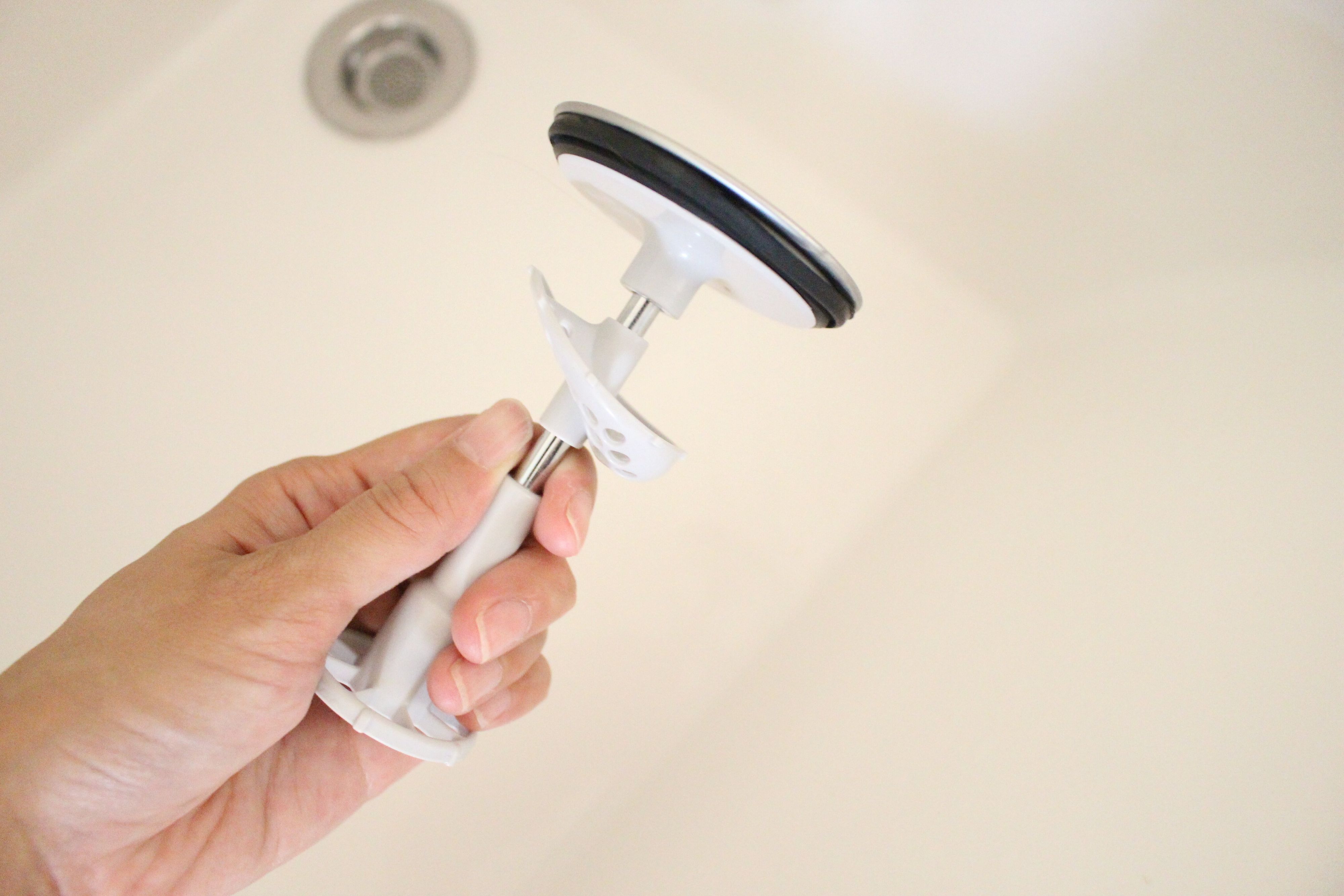 こちらは、最初に洗面台に付いていた分解できる排水口カバー。しかしこの複雑な形は私にとって掃除がとてもしにくく、髪の毛やホコリなどのゴミ屑が絡まると非常に取りづらい厄介な場所でした。