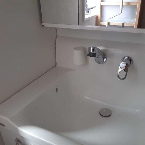ちなみにこちらのシリーズの「コップホルダー」でコップも吊るしています。洗面所のコップを浮かせることでぬめり知らずです。