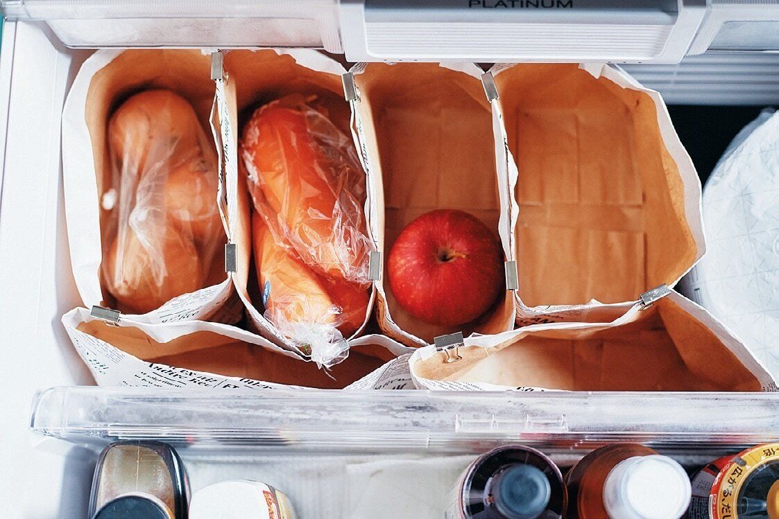 プラケースで仕切ると、野菜の形によって収納しづらい物も。紙袋なら形が自在に変えられるし、汚れがついたらそのまま袋を捨てるだけなので、掃除の手間もかかりません!