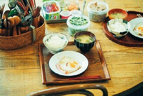 7:07 昨日の残りのみそ汁を温めて盛りつけし、「ごはんだよ~」。