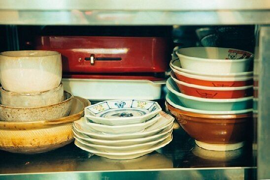 週3~4回は作るラーメン&炒飯用の器は、セットで棚の特等席へ。「一緒に使うことが多いから、秒で取り出せるようにしています」。
