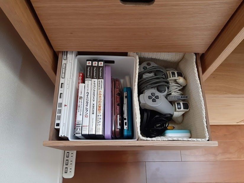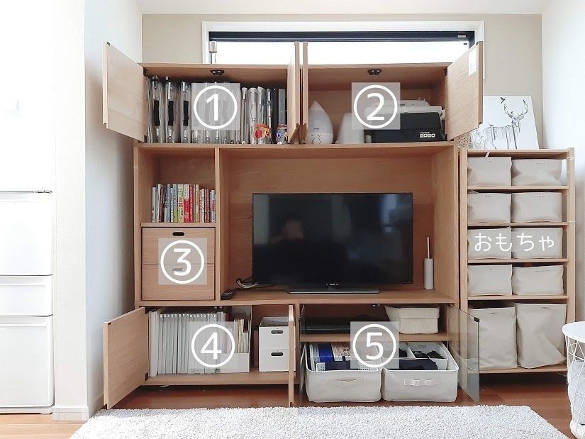 これが分かったとき、ただ保管される為だけにクローゼットや押入れの奥に収納するよりすぐに子どもが手に取れるリビングに収納しようと思ったんです。