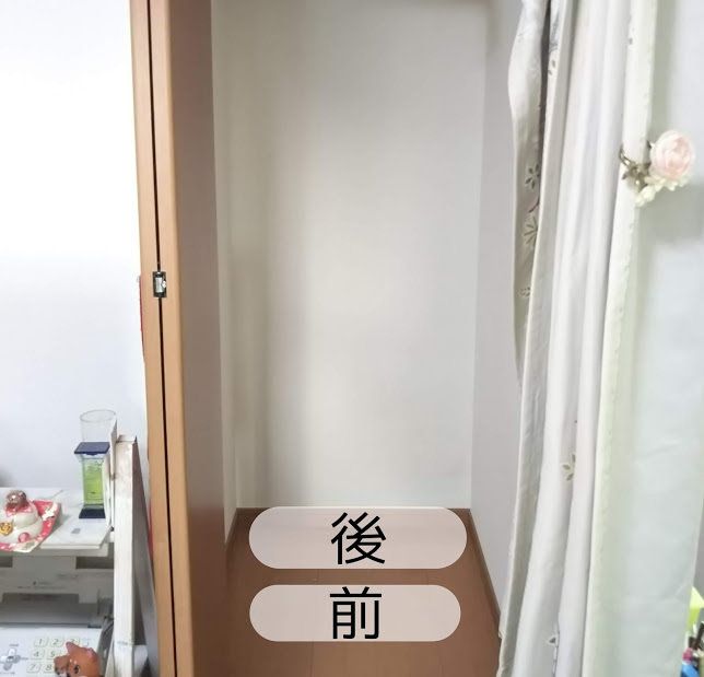 やっぱり奥行き分は収納として使いたい!という場合、収納を「前後で分ける」という方法なら大丈夫。