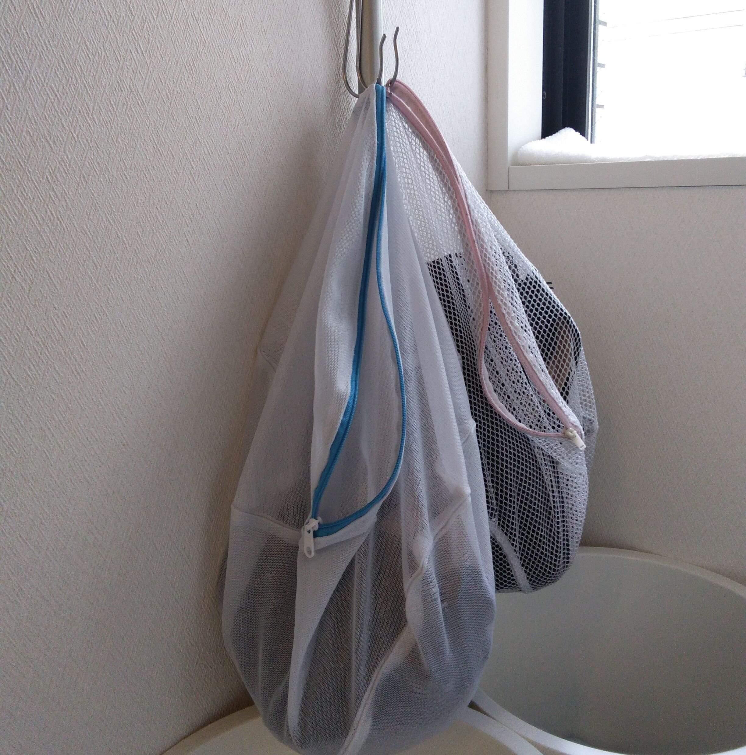 色違いの洗濯ネットを、S字フックに取りつけておきます。「ブラ用」「パンスト用」など、1~2個用意しておきます。あるいは「ママ用」「子ども用」など人別でもよいですね。