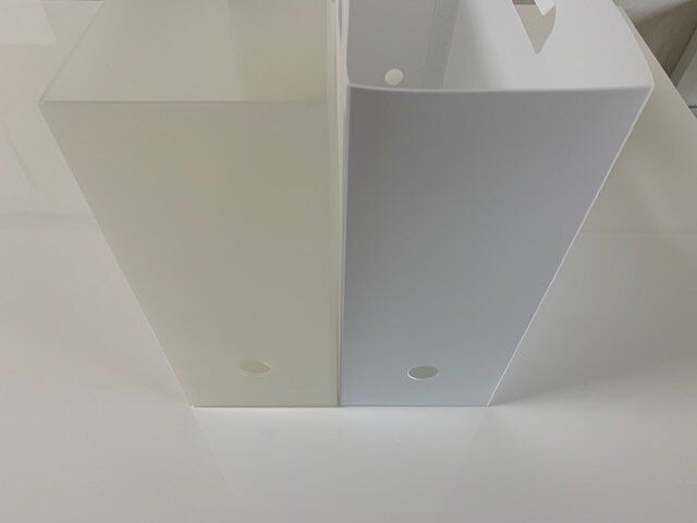 左がPLUSのPP製のファイルボックス。右がダイソーのPP製ファイルボックス。