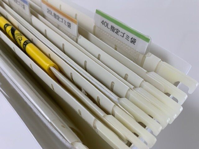 リヒトラブのハンギングフォルダを引っ掛けてゴミ袋の収納するとこんな感じです。