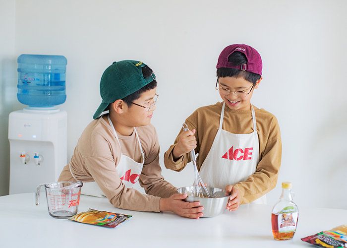あわただしい朝は、息子さんたちが朝食作りのサポートをしてくれるという嵐田家。冷水を混ぜて焼くだけのパンケーキや、飲み物の用意も、クリクラのウォーターサーバーがあればより簡単&スピーディーですね。息子さんたちもお手伝いを楽しみにしているそうです。