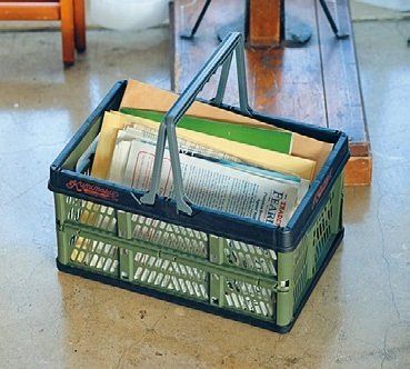 ●「取っ手付き折りたたみコンテナM グリーン」(¥780)