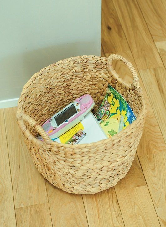 夕飯の前は準備でバタバタして、散らかったものの片づけまで手が回らないけれど、かごにぽいぽい入れるだけなら一瞬でスッキリ。