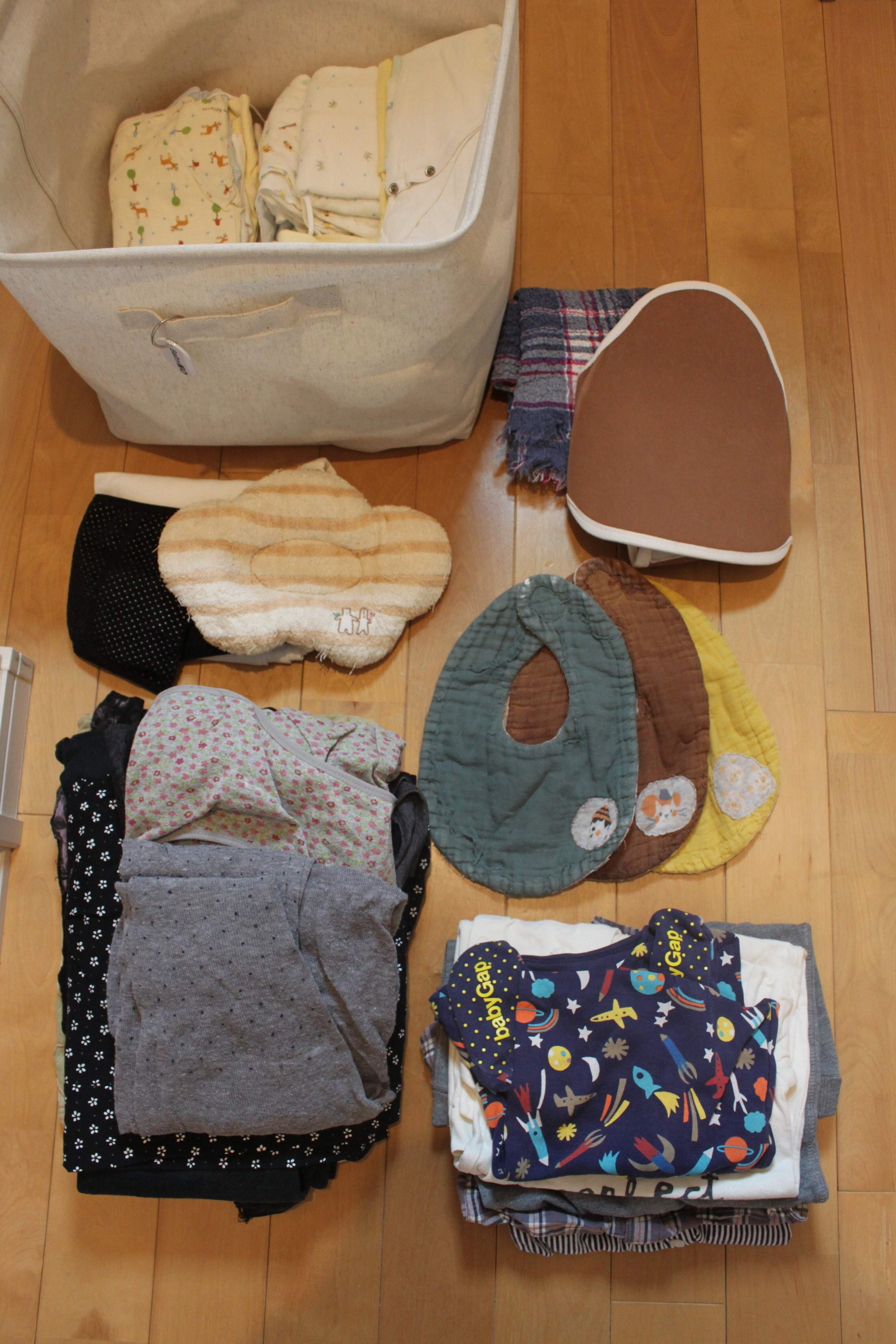 それこそたくさん着せた思い出のお洋服、ガーゼケット、小さなおもちゃ、ファーストシューズ、思い入れのあるスタイ、雑貨など、厳選が難しく