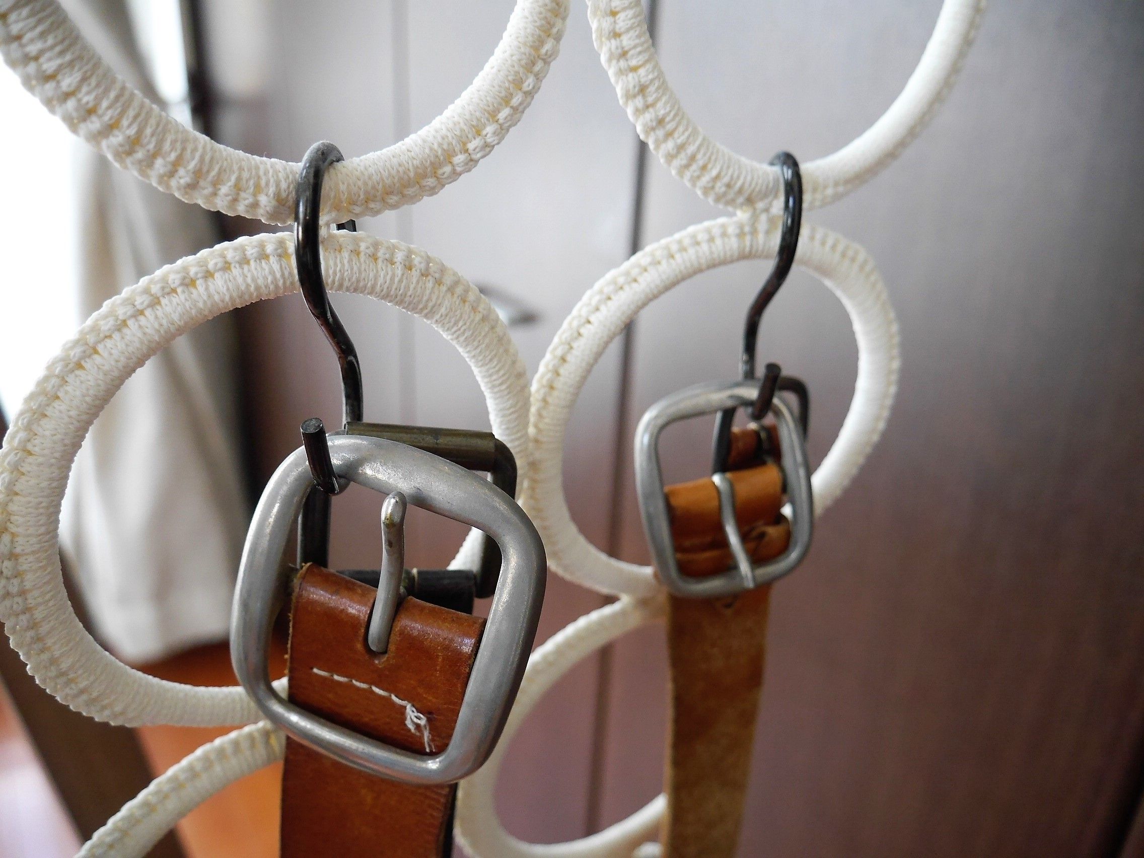 「巻くのが面倒」「収納ボックスの置き場に困る」という人は、ベルトやネクタイ、スカーフをまとめて掛けられるハンガーを活用しましょう。この方法なら疲れて帰ったあとでも手間をかけずに収納できますし、クローゼットの中で邪魔にならない点もうれしいですね。
